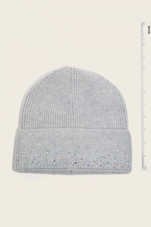 Rhinestone Embroidered Ribbon Bow Knit Beanie