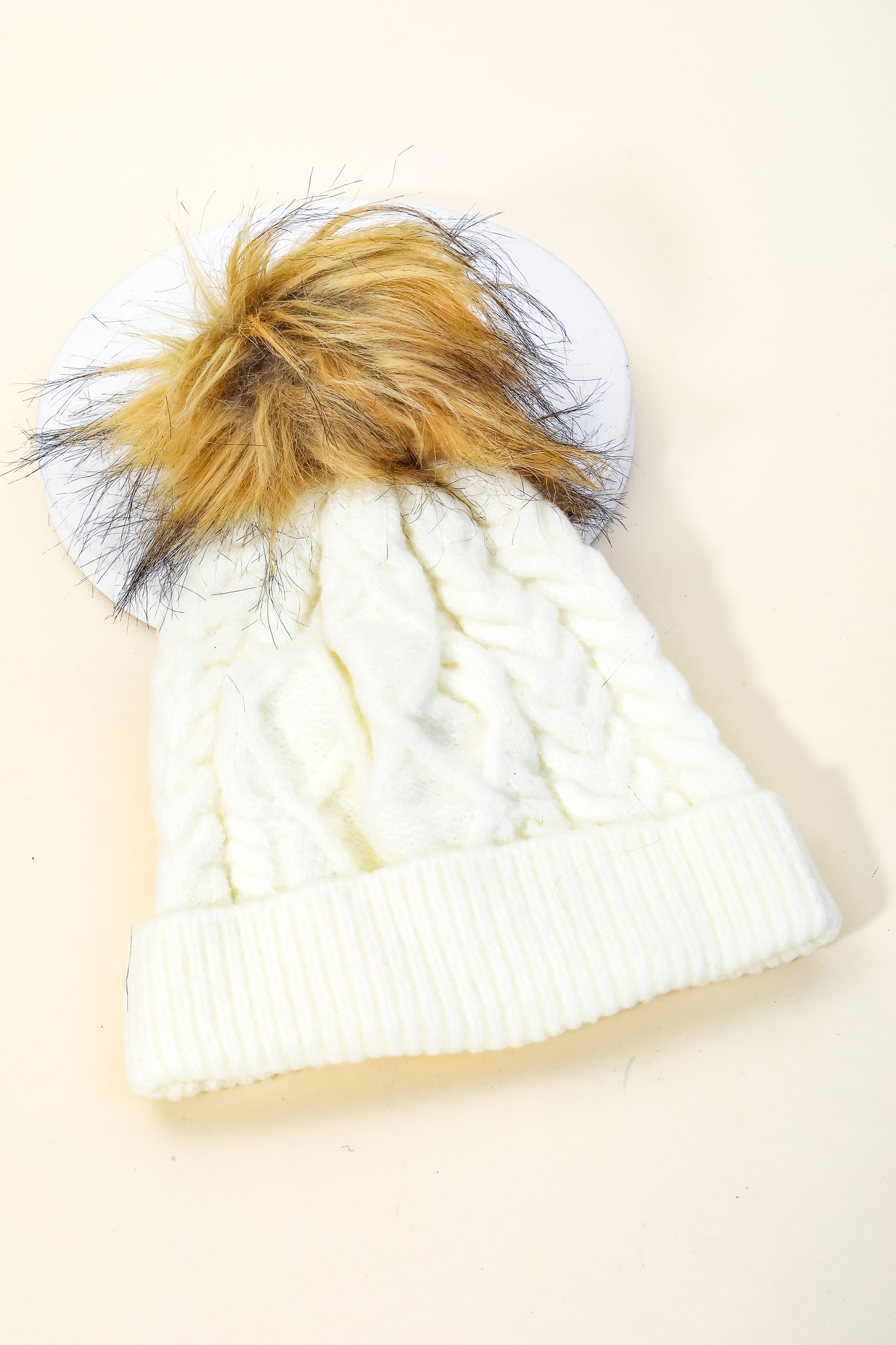 This is a stunning beanie that has a unique cable knit fuzzy pom beanie design. An excellent choice for business casual occasions! Available in IV and MV.