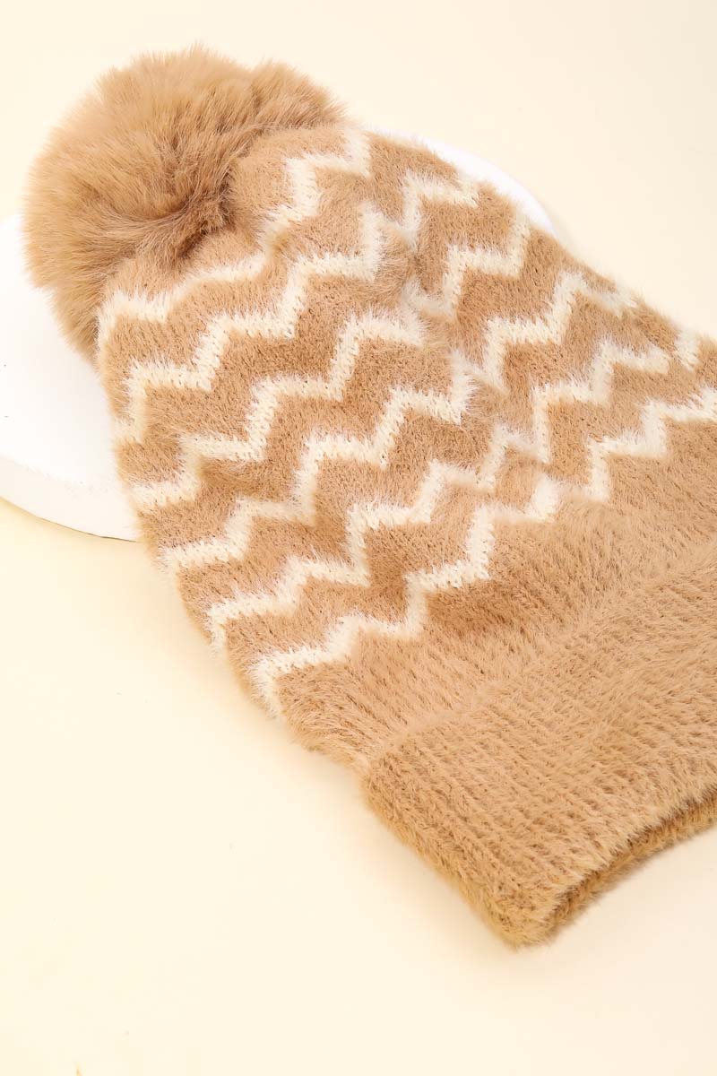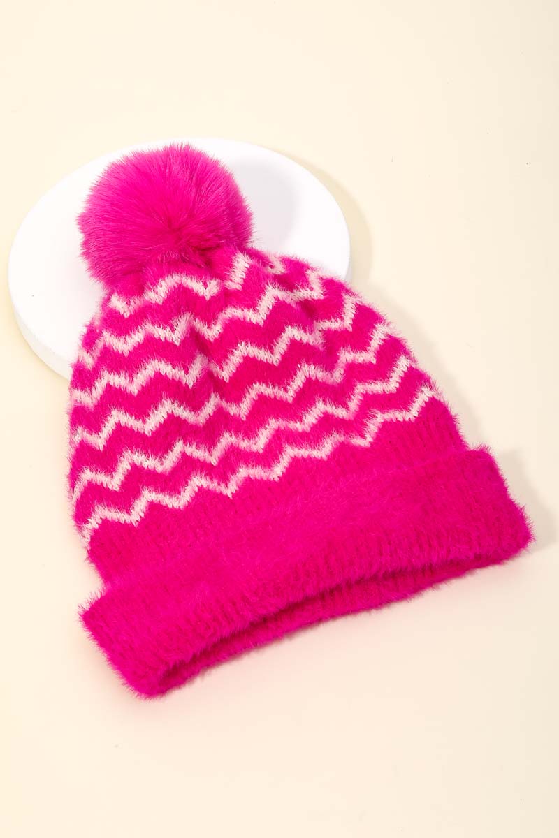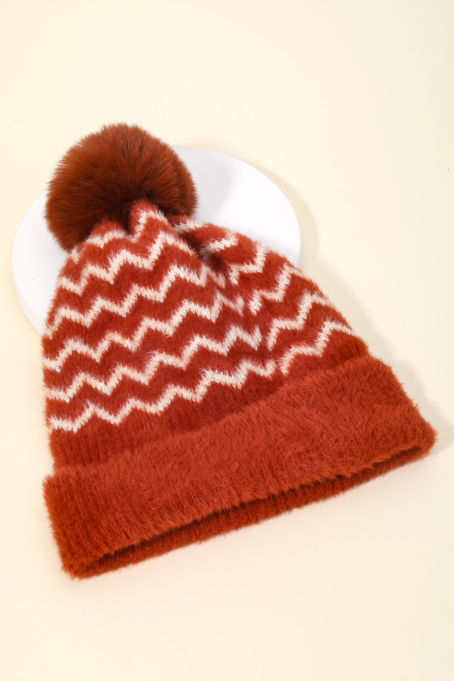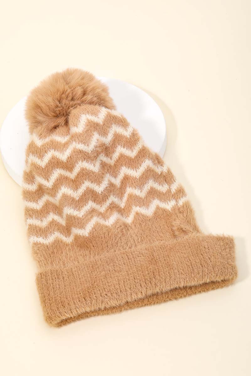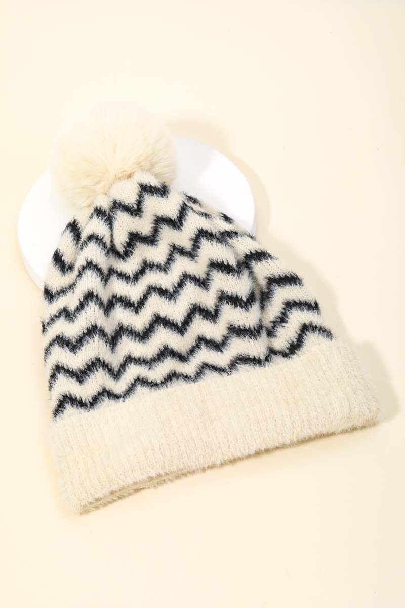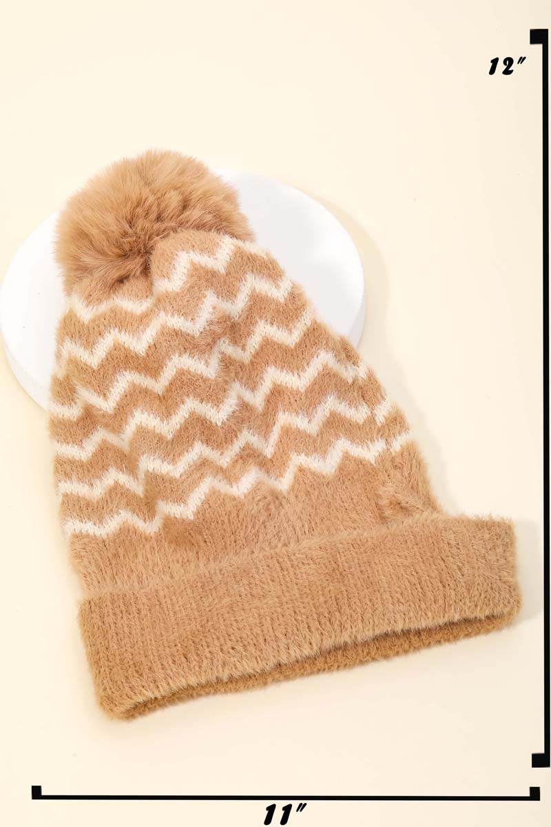 - This popular trending beanie features a gorgeous fuzzy zig zag striped beanie design. An excellent choice for casual to formal occasions, goes perfectly with business formal work office suits blazer and dresses office attire. Available in BK, FU, FU, IV, KA, KA, RU and TQ.