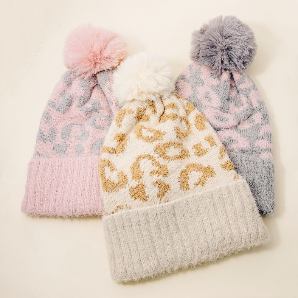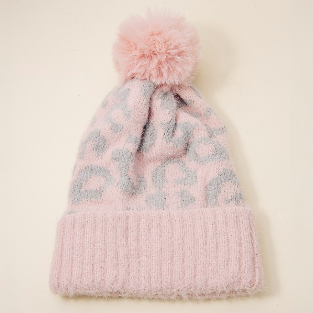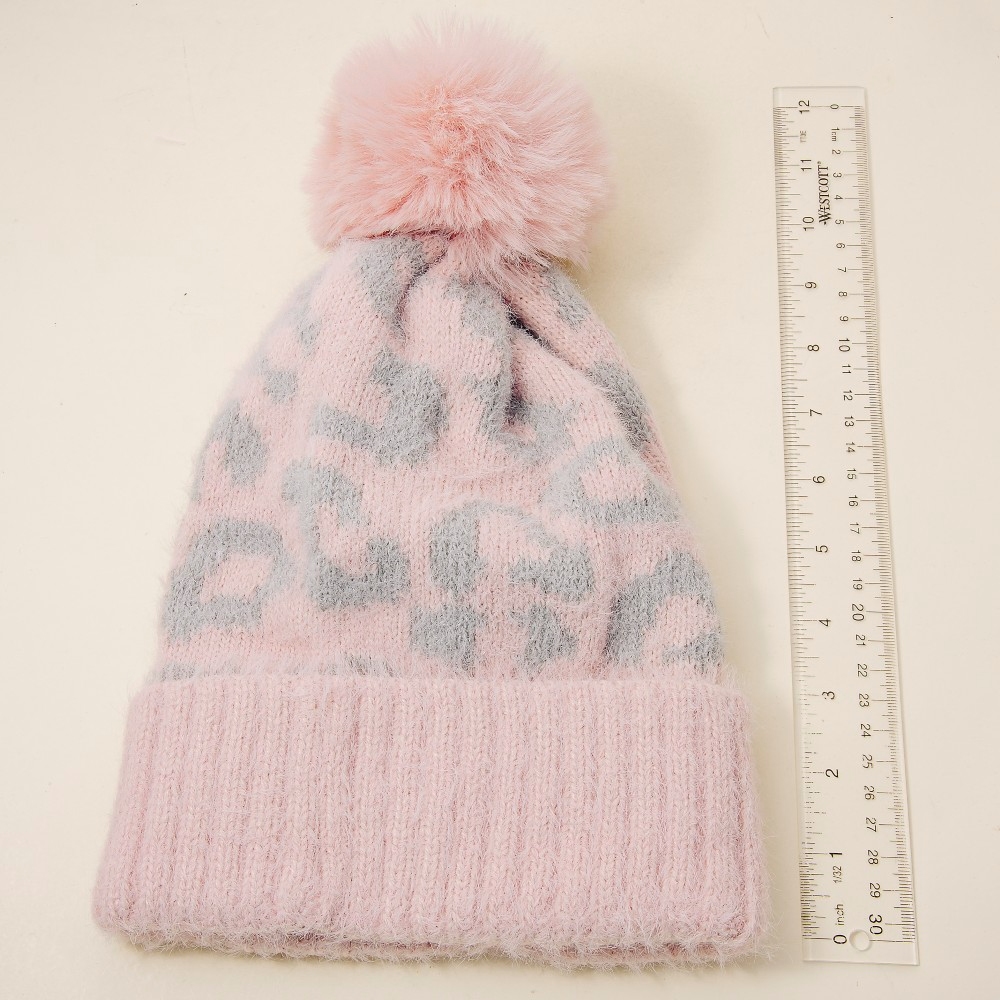 This piece is the perfect way to add some glamour to your look, this beanie contains a special leopard print fuzzy pom design. Transform your outfit from ordinary to extraordinary with the touch of elegance provided by this versatile beanie. Available in GR, IV, PK, BK and KA. This item is sold in packs of 1.