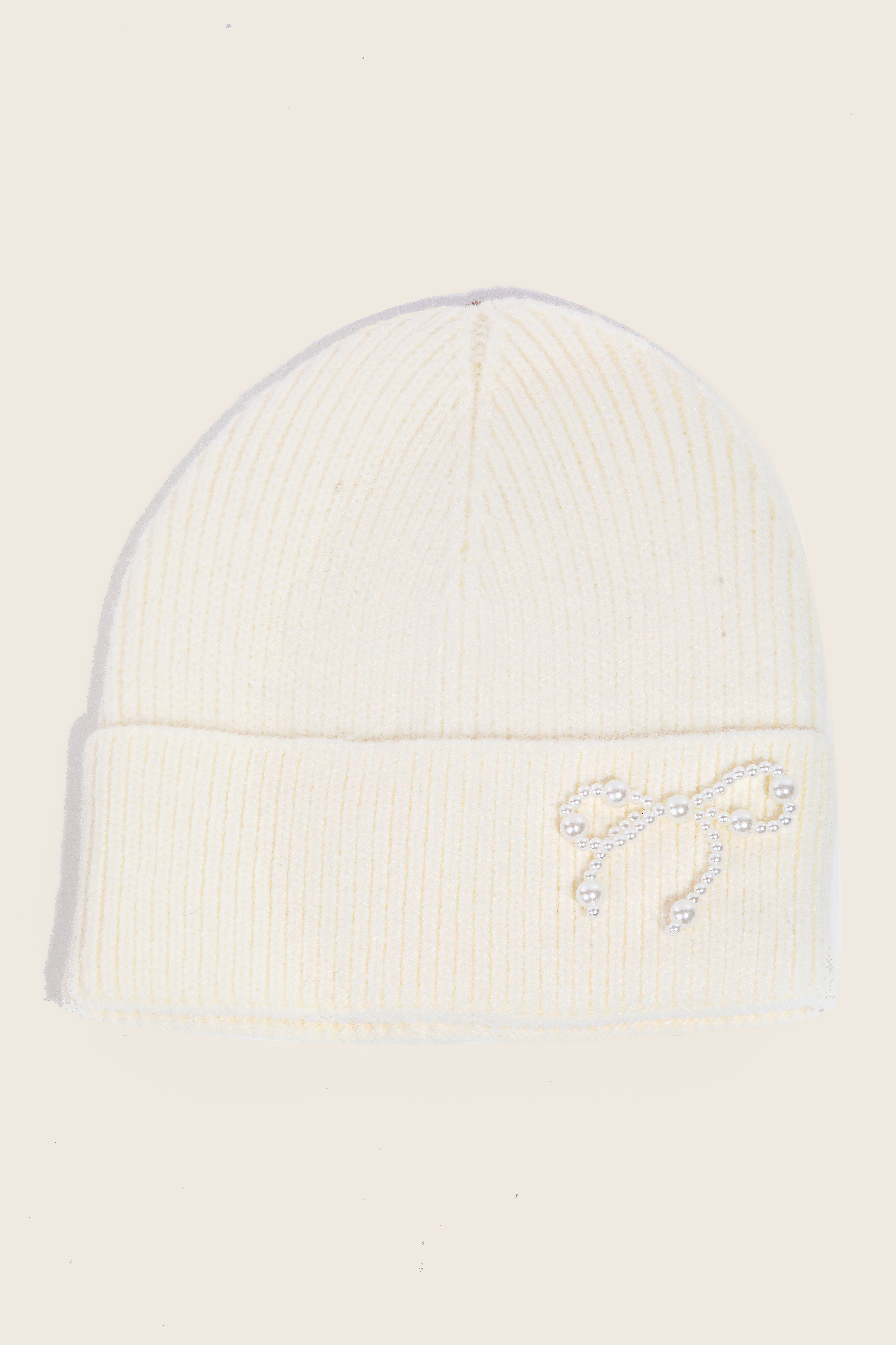 This piece is the epitome of sophistication and elegance, this beanie possesses a fine pearl beaded ribbon charm knitted design. The perfect way to elevate any outfit, this beanie adds a touch of elegance and style. Available in BK, IV, PK and WH. This item is sold in packs of 12.