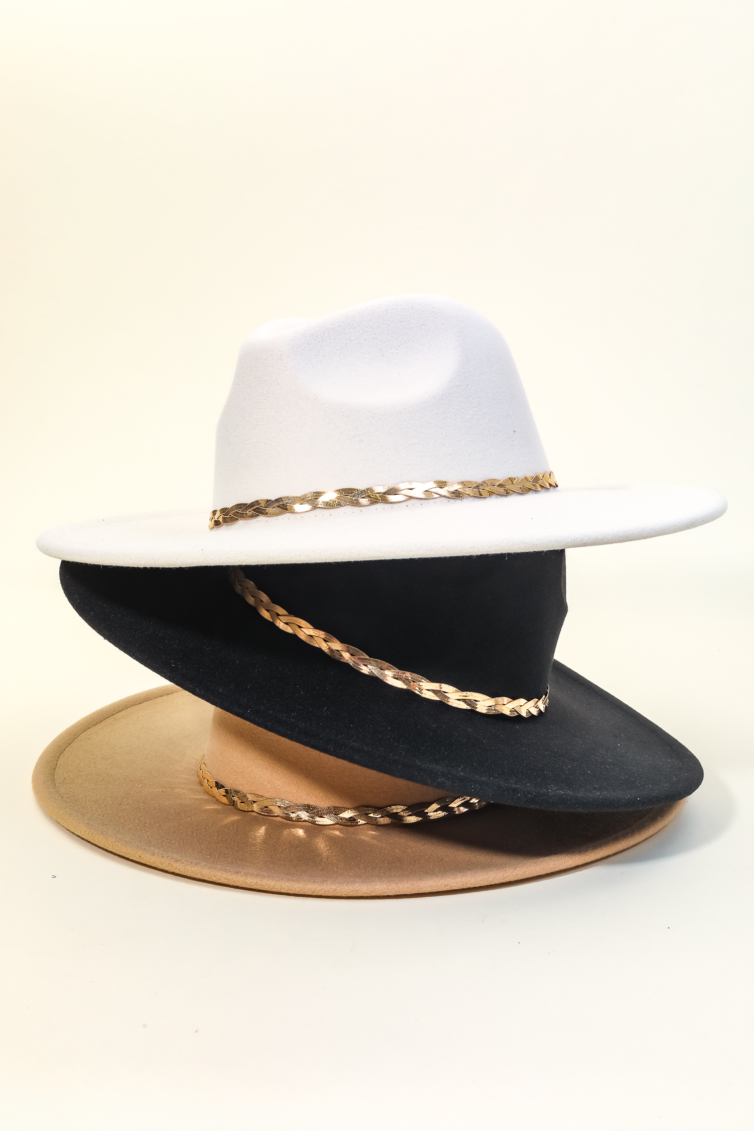 A stunning must have fedora hat that is made into a braided snake chain fedora hat design. Perfect for everyday wear. Available in BK,IV and KA. Faux suede is a synthetic fabric typically 100% polyester made to resemble genuine suede that is produced from a cow hide. This fedora hat is made with 100% Polyester. Also made with an adjustable inner string. This item is sold in packs of 1.
