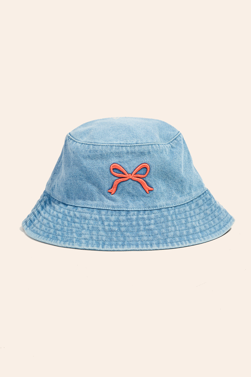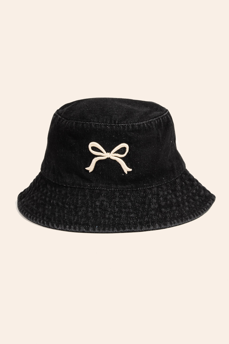 Add a touch of elegance and glamour to your look, this bucket hat features an exceptional ribbon bow embroidered design. This item is the perfect finishing touch to any outfit, adding a touch of glamour and sophistication. Available in BK, DDN and LDN. This item is sold in packs of 1.