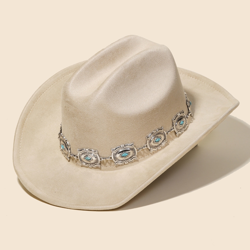 • Elevate any look, this cowboy hat displays a unique concho chain disc design. Elevate your style effortlessly with this versatile cowboy hat, enhancing the appeal of any ensemble. Available in GBK, SBK, BR, IV, OL and TA. This item is sold in packs of 1.