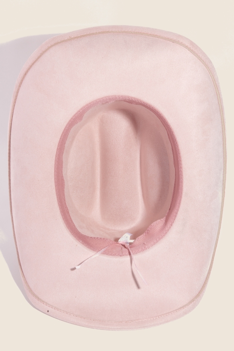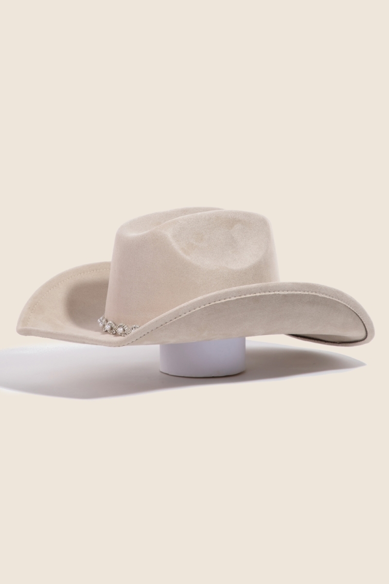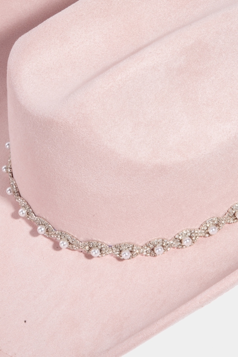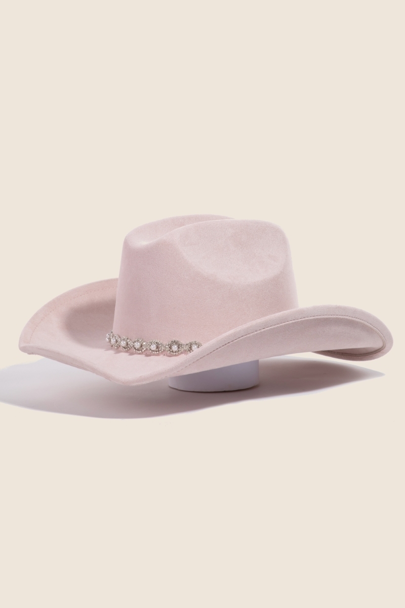 • The perfect way to add some edge to your look, this cowboy hat displays a unique pearl pattern band design. A perfect addition to your wardrobe that effortlessly enhances your style. Available in BK, IV, PK, TP. This item is sold in packs of 1.