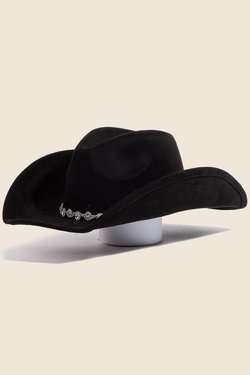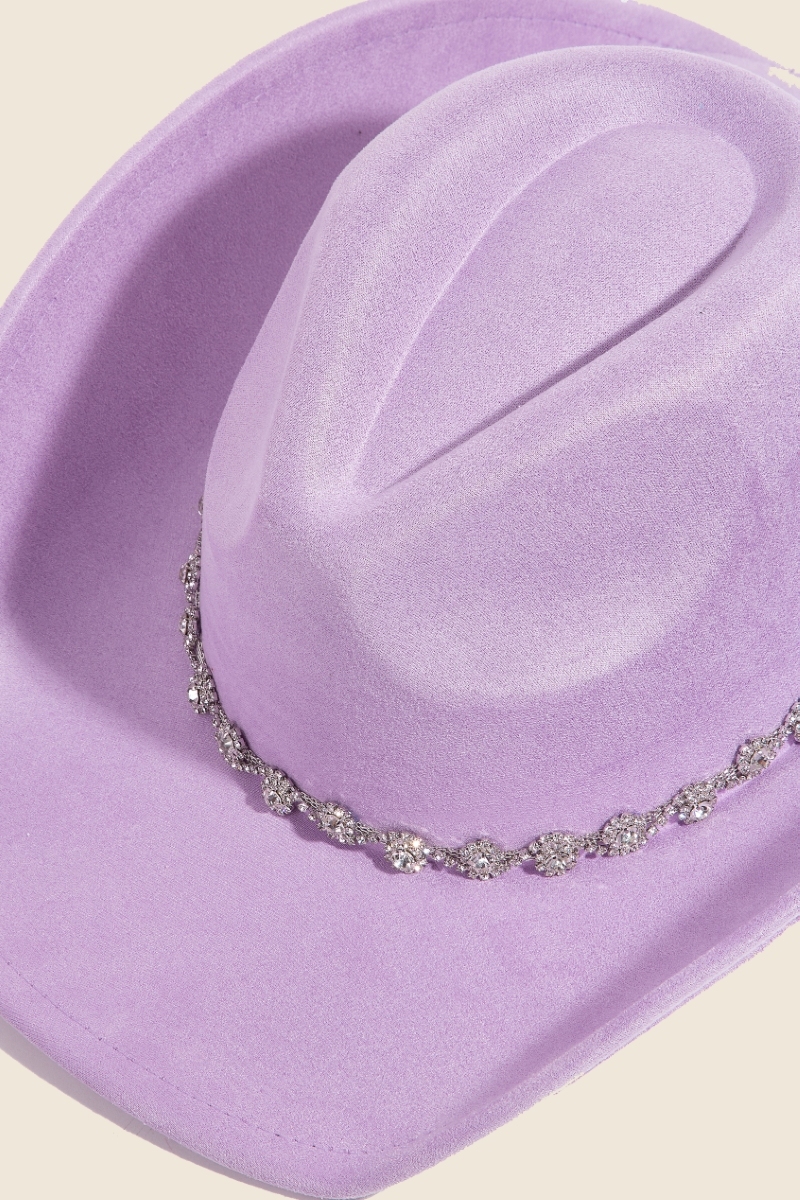 • A modern classic, this cowboy hat embodies a sophisticated rhinestone link design. Infuse your ensemble with a touch of sophistication using this versatile cowboy hat, a game-changer in the world of fashion. Available in BK, IV, PK, PU. This item is sold in packs of 1.