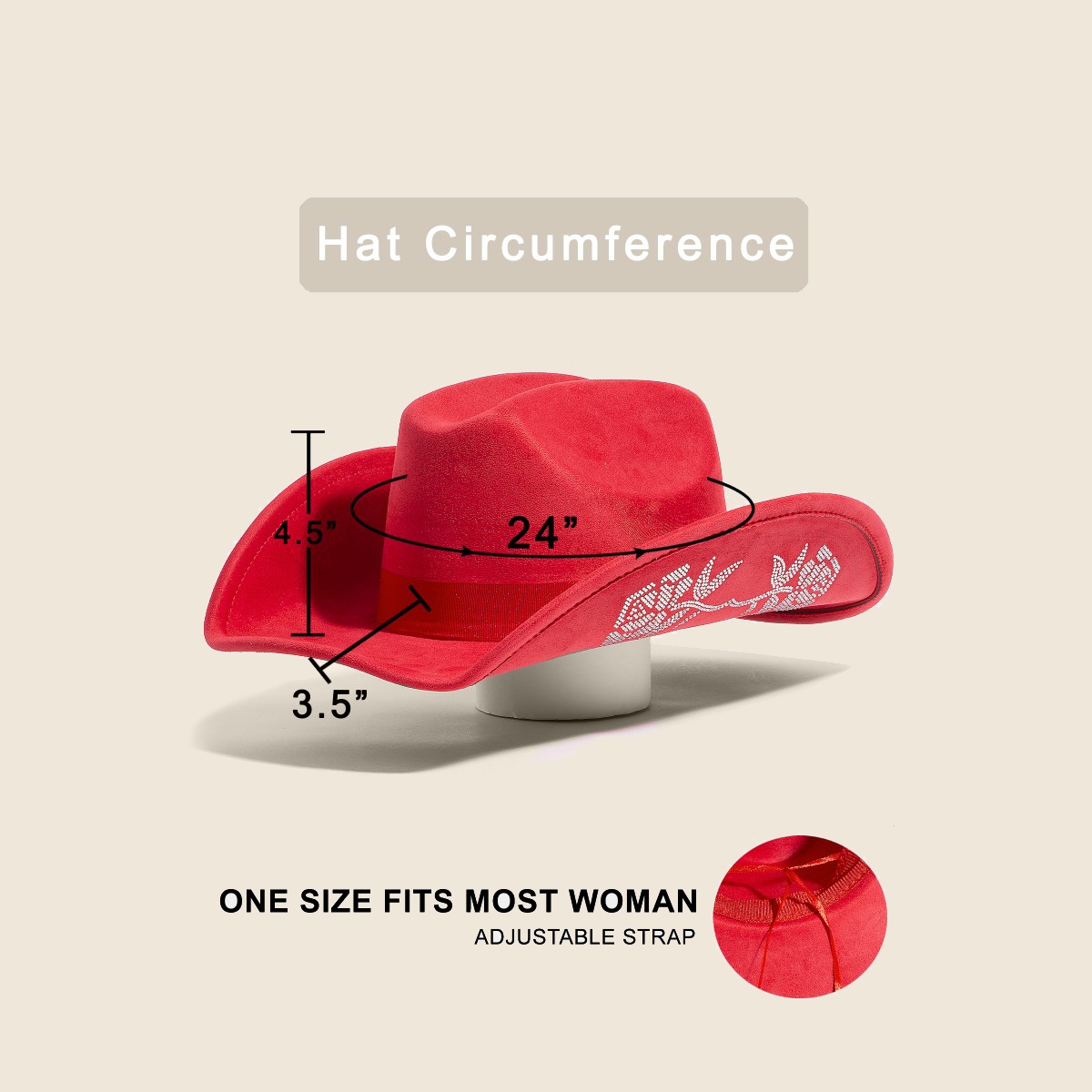 - This piece is designed to make a statement, this cowboy hat embodies a sophisticated rhinestone rose embroidered design. This item is ideal for those who want to add some personality to their outfits without being too bold. Available in BK, IV, RD. This item is sold in packs of 1.