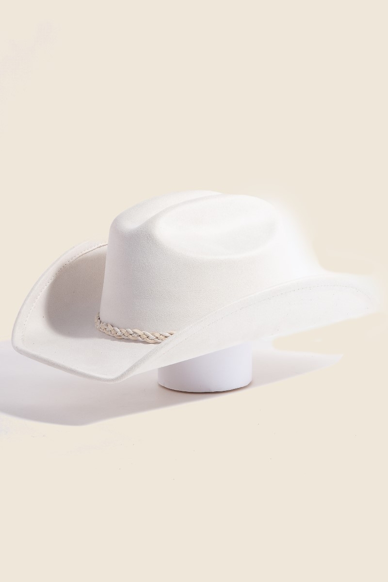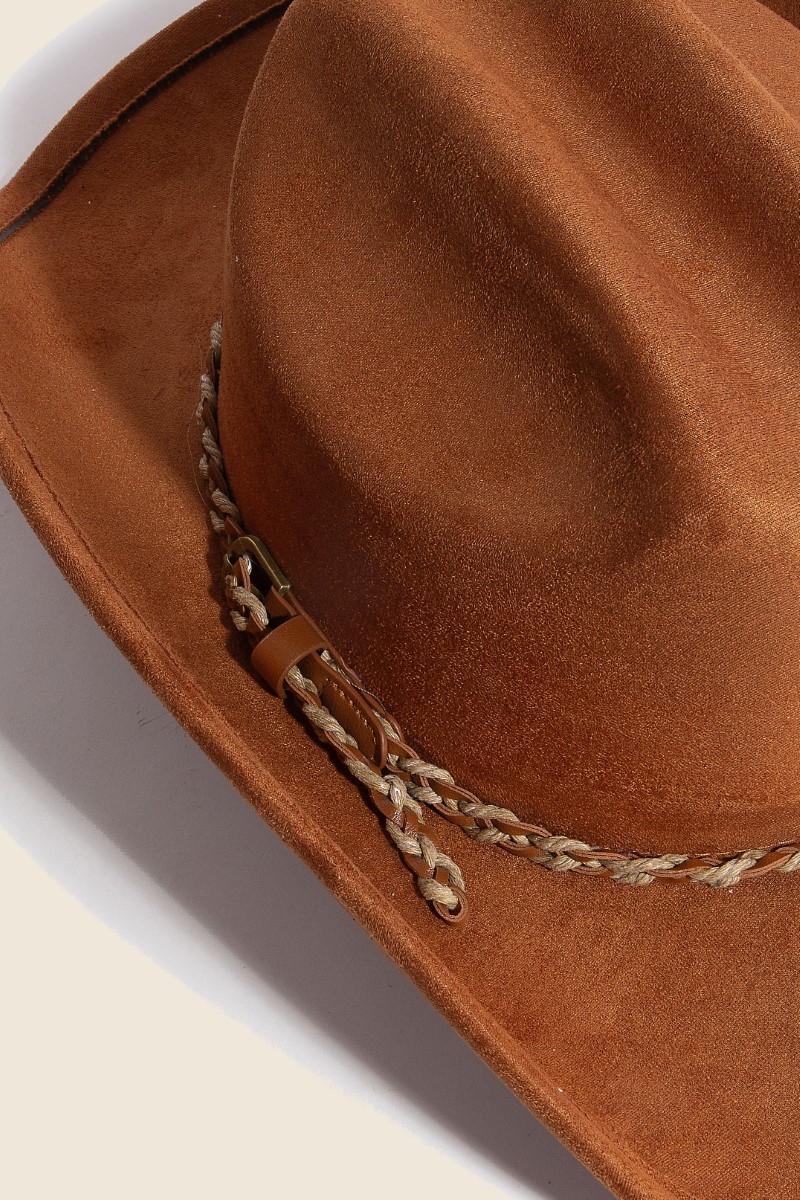 • Effortlessly elevate your outfit, this cowboy hat displays a unique rope band design. Master the art of accessorizing with this versatile cowboy hat, a key element for achieving a chic and polished look. Available in BK, BR, DBR, IV. This item is sold in packs of 1.