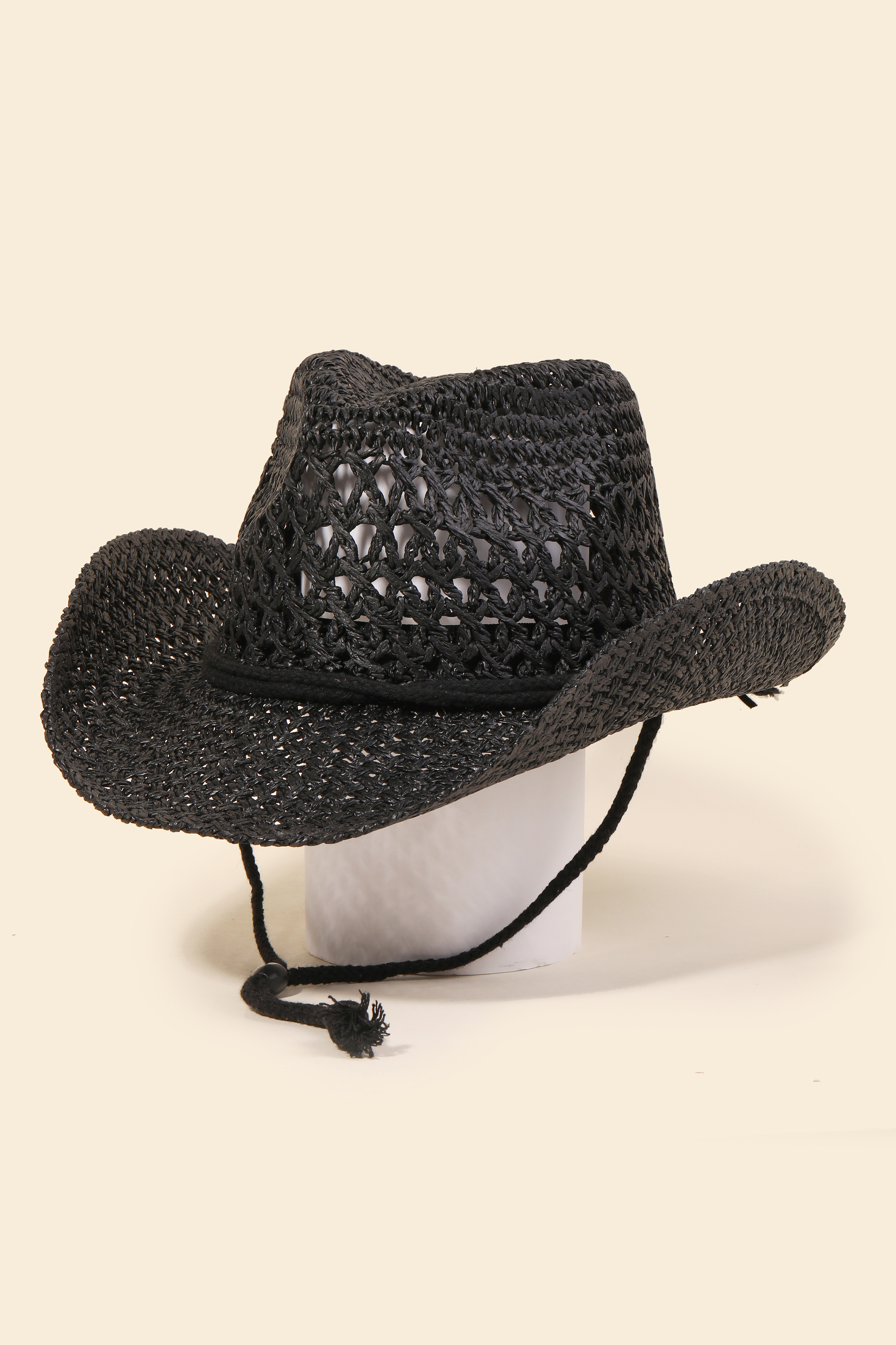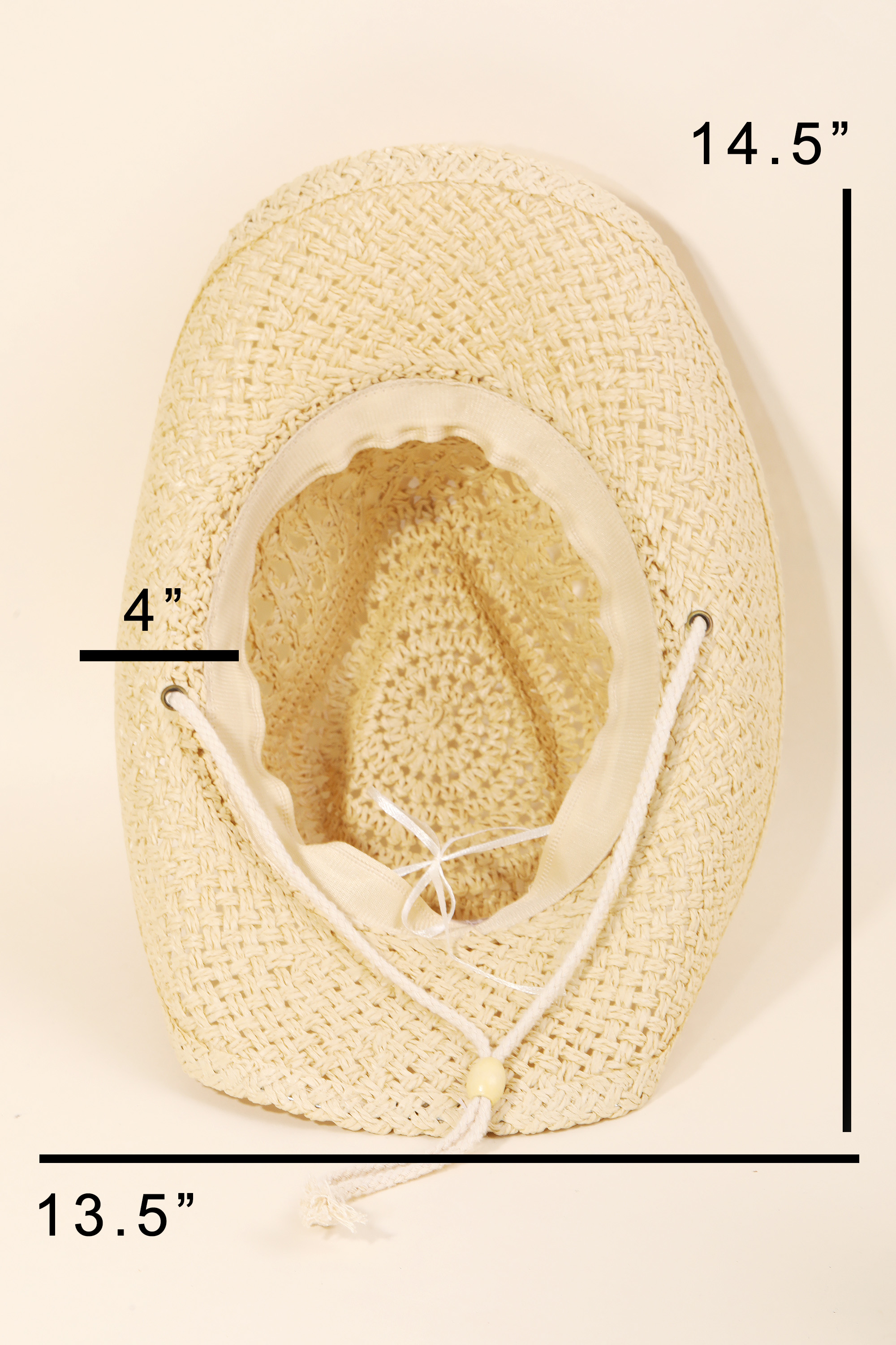 Western Long Horn Studded Strap Straw Cowboy Hat
