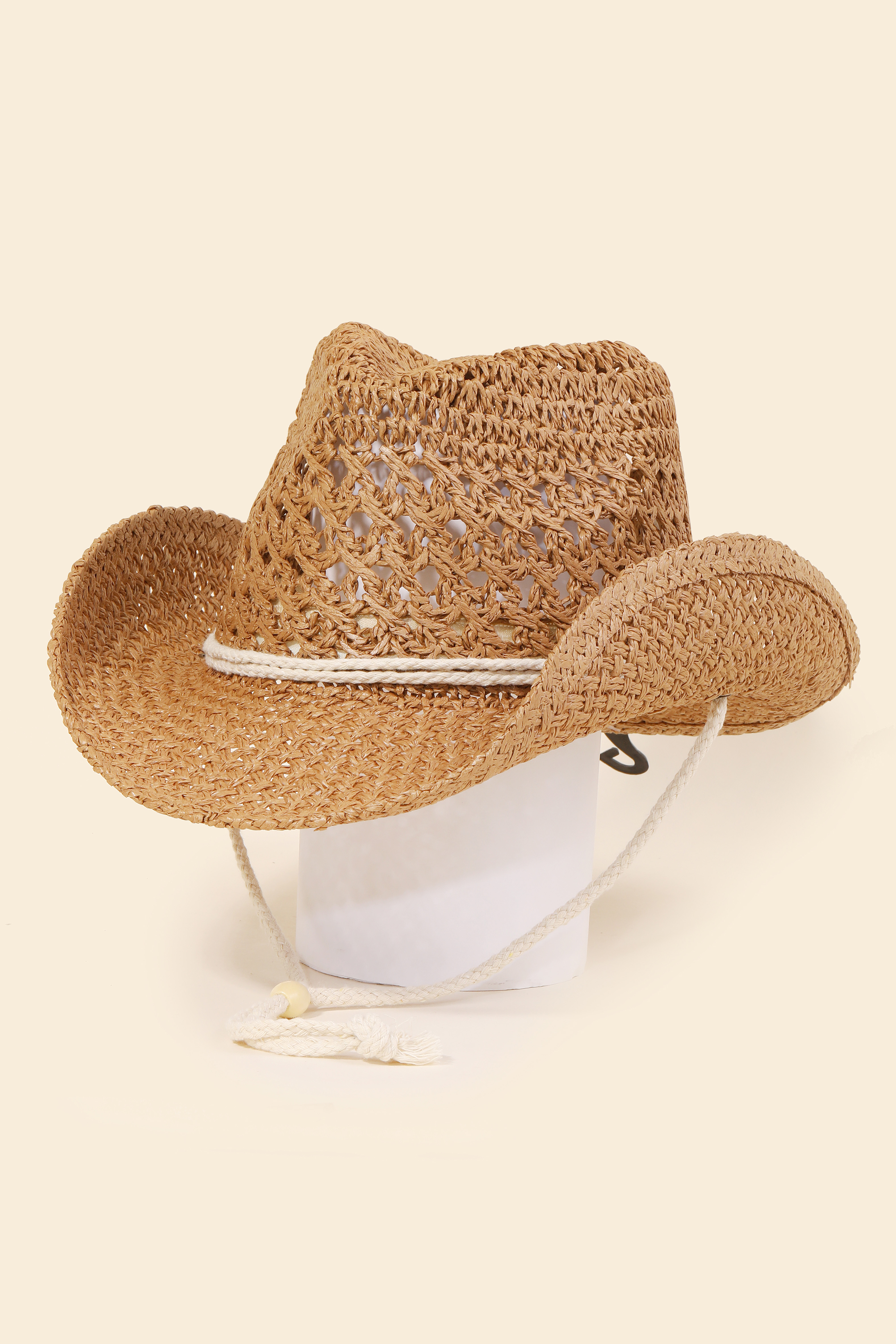 • A versatile and stylish addition to any wardrobe, this cowboy hat incorporates a flawless straw braided rope strap design. Perfect for dressing up or down, this versatile cowboy hat adds a touch of sophistication to any look. Available in BE, BK, BR, IV. This item is sold in packs of 1.