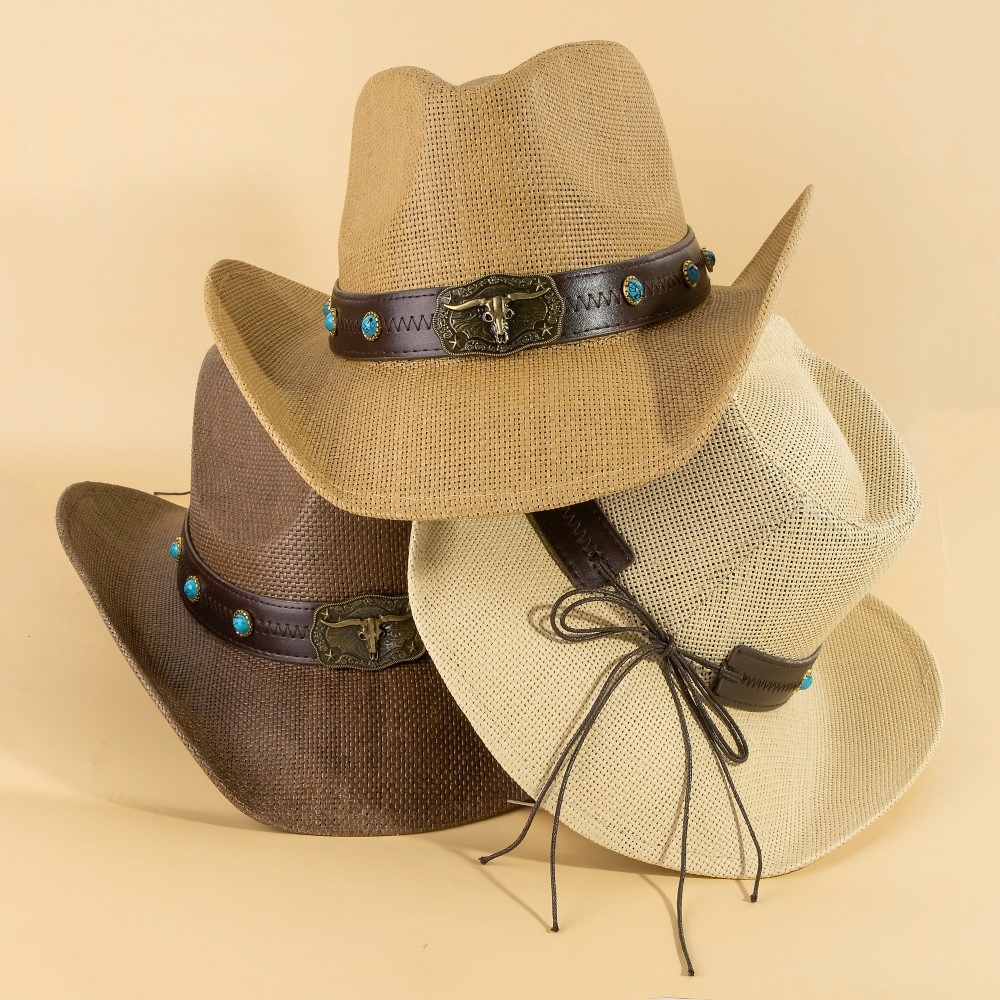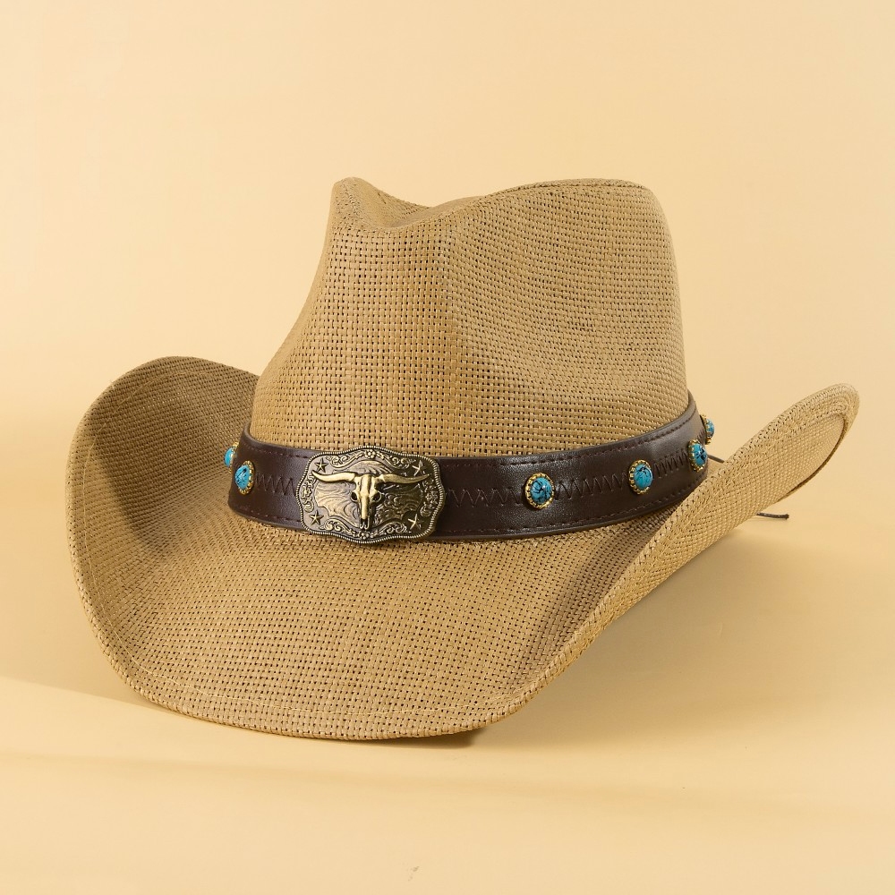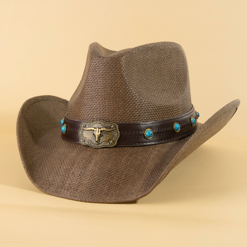 - The perfect way to showcase your unique style, this cowboy hat introduces an exceptional western longhorn strap turquoise accent design. Add a dash of sophistication to your look with this versatile cowboy hat, a must-have for fashion enthusiasts. Available in BR, IV, KA, BR, IV and KA. This item is sold in packs of 1.