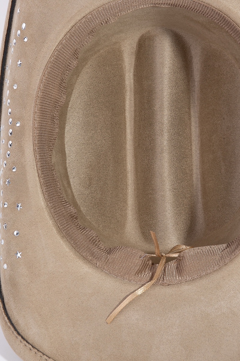 A classic design with a modern twist, this cowboy hat features a distinct western star band studded design. Perfect for adding some personality and flair to your wardrobe, this cowboy hat is a must-have. Available in BK, CA, GR, IV. This item is sold in packs of 1.