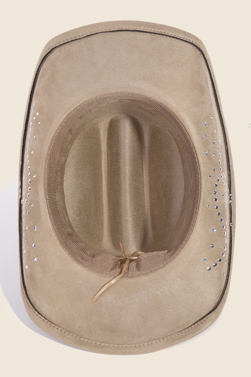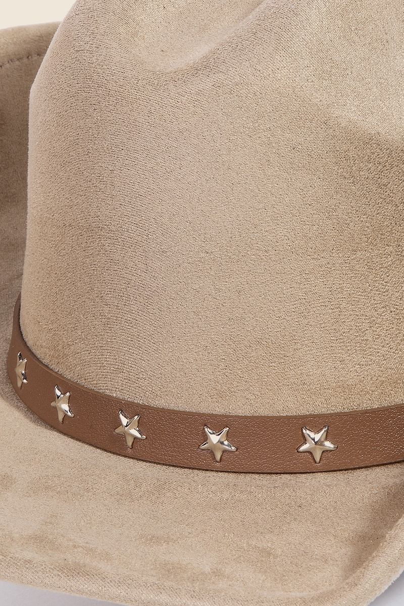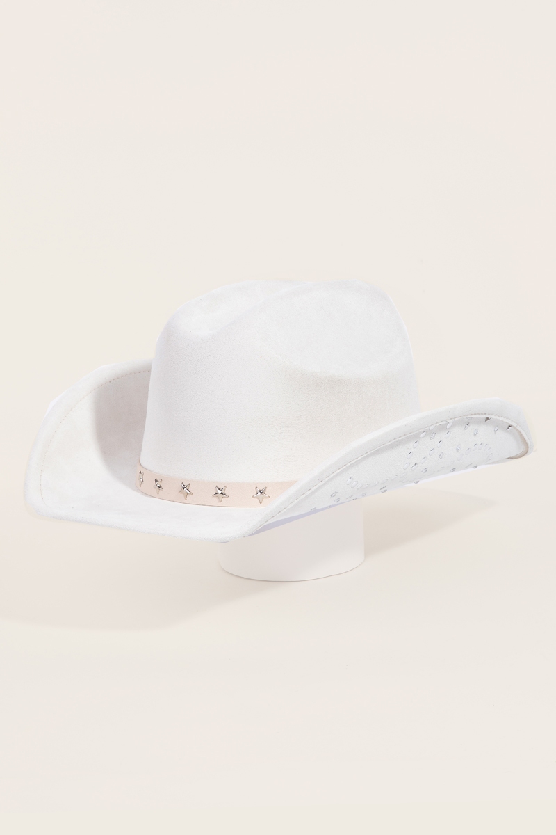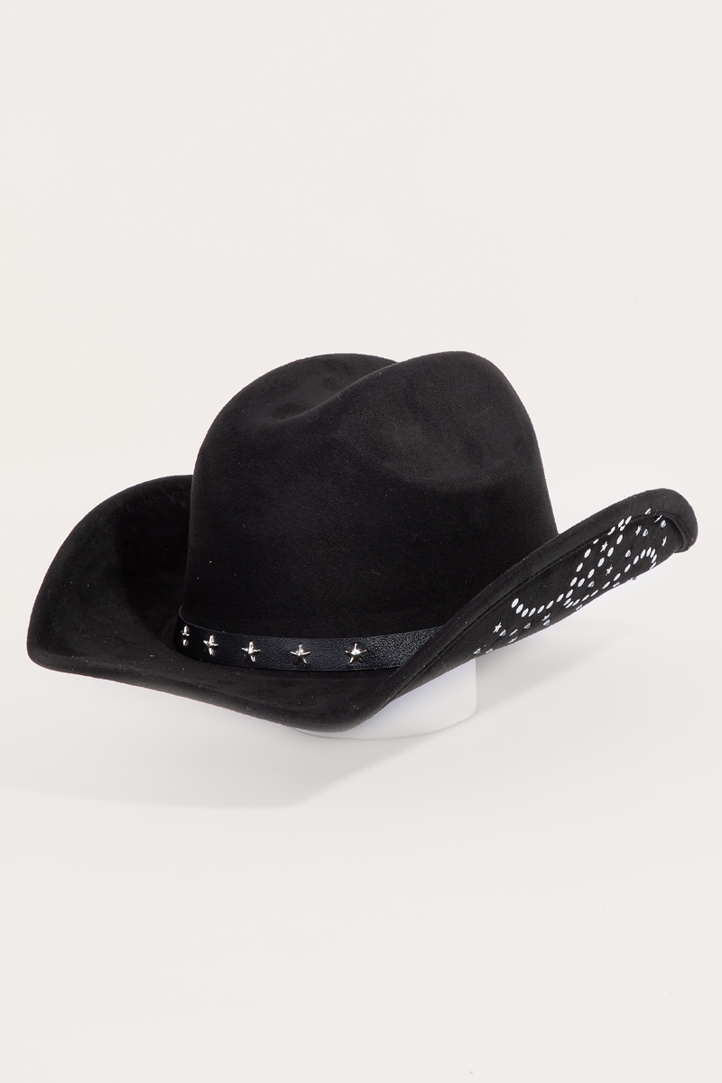 - A classic design with a modern twist, this cowboy hat features a distinct western star band studded design. Perfect for adding some personality and flair to your wardrobe, this cowboy hat is a must-have. Available in BK, CA, GR, IV. This item is sold in packs of 1.