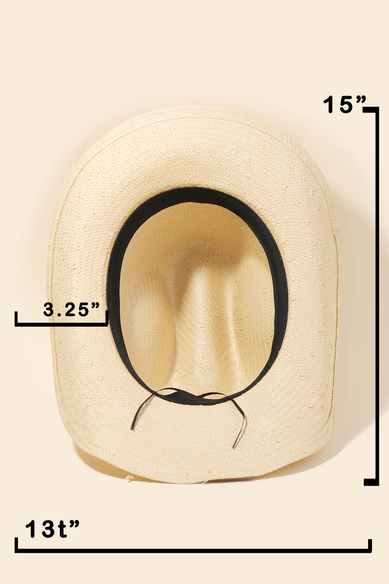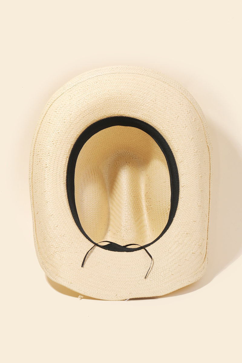 Beaded Strap Straw Cowboy Hat
