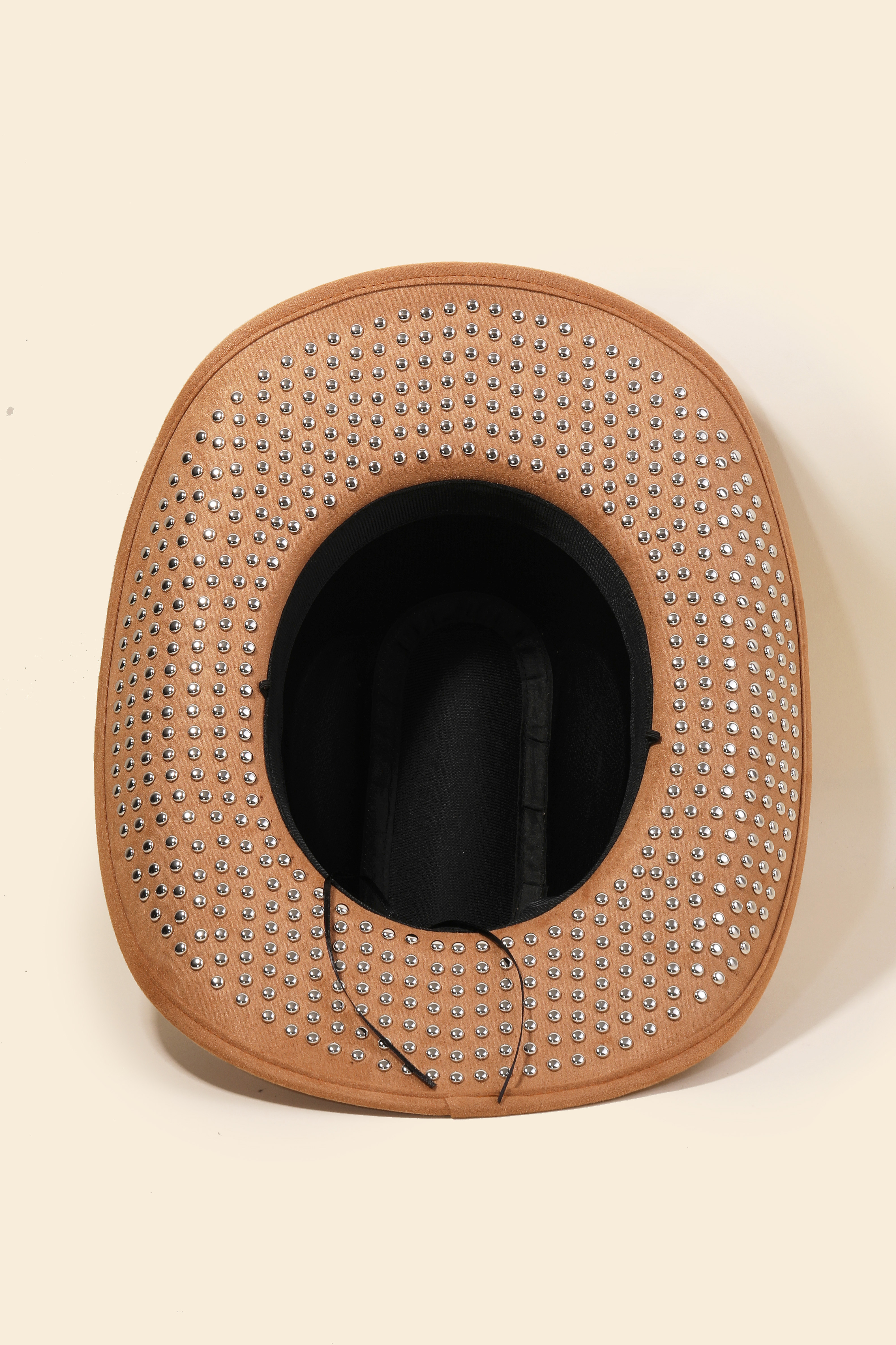 • The perfect way to add some sparkle to your outfit, this cowboy hat showcases a breathtaking studded brim design. This item is ideal for those who want to add some personality to their outfits without being too bold. Available in BK, BR, IV, KA. This item is sold in packs of 1.
