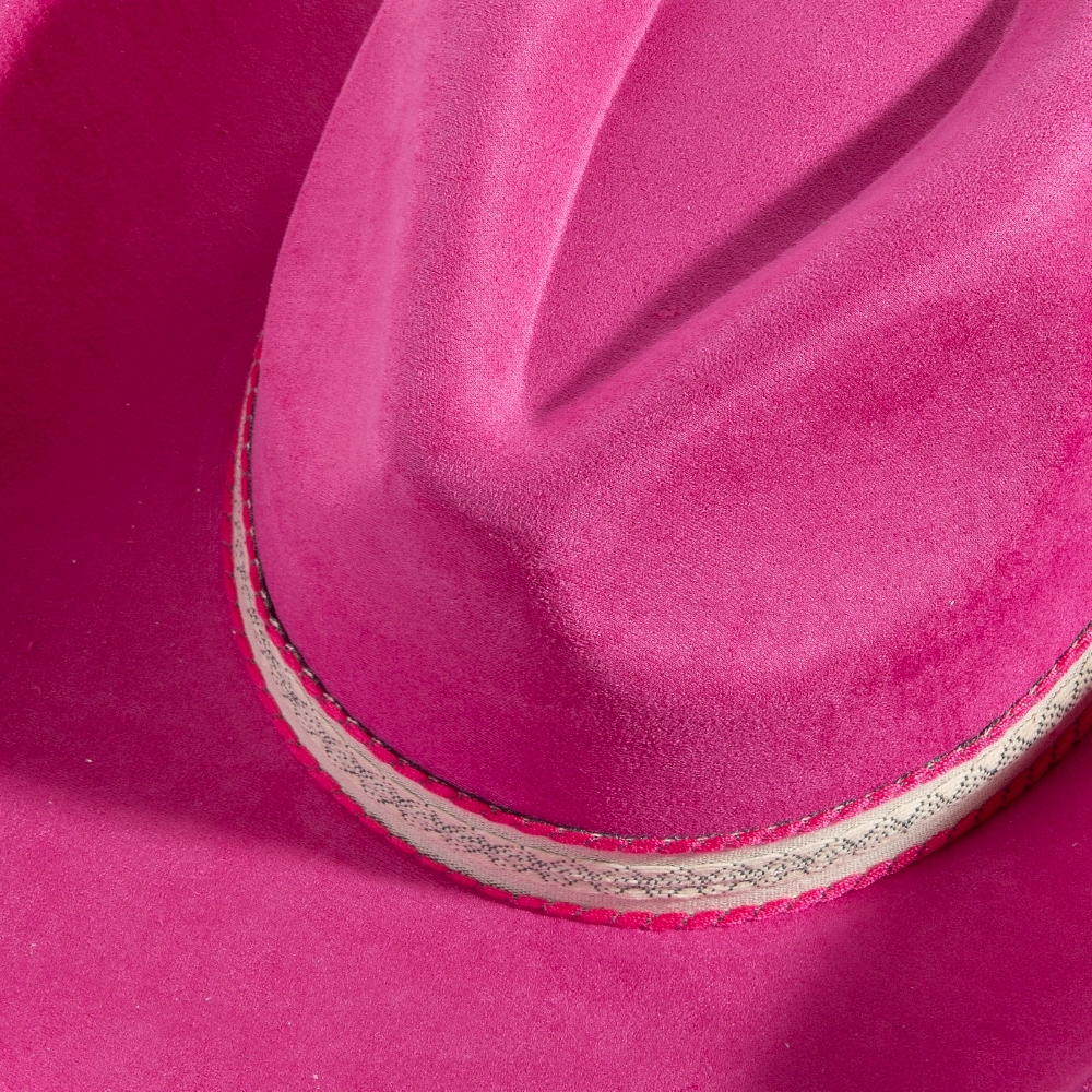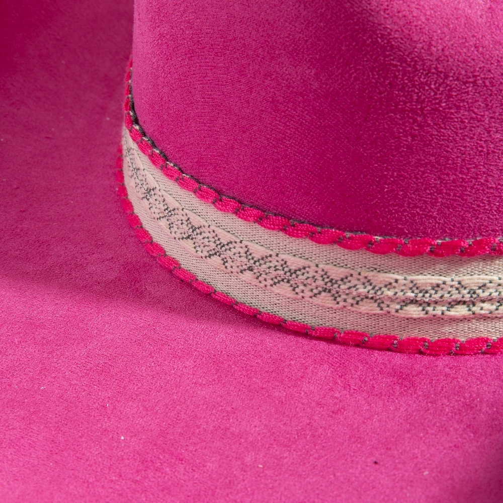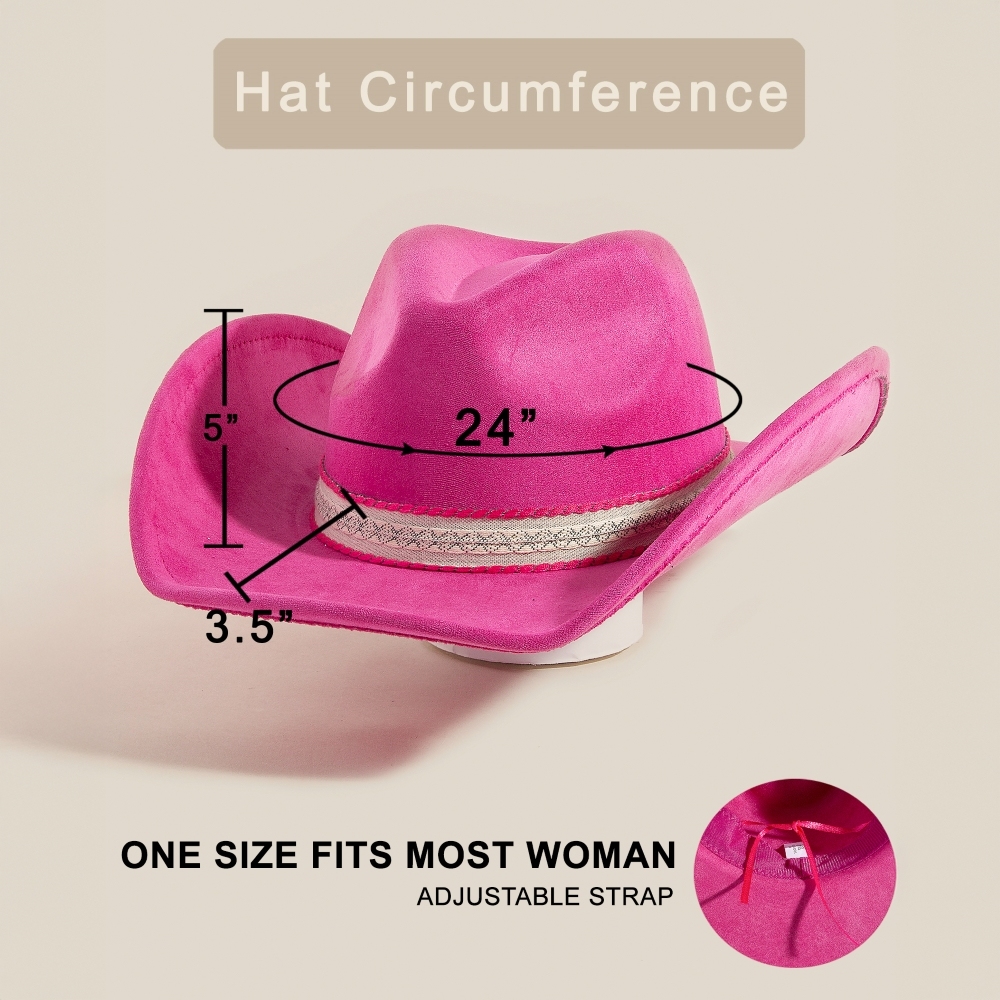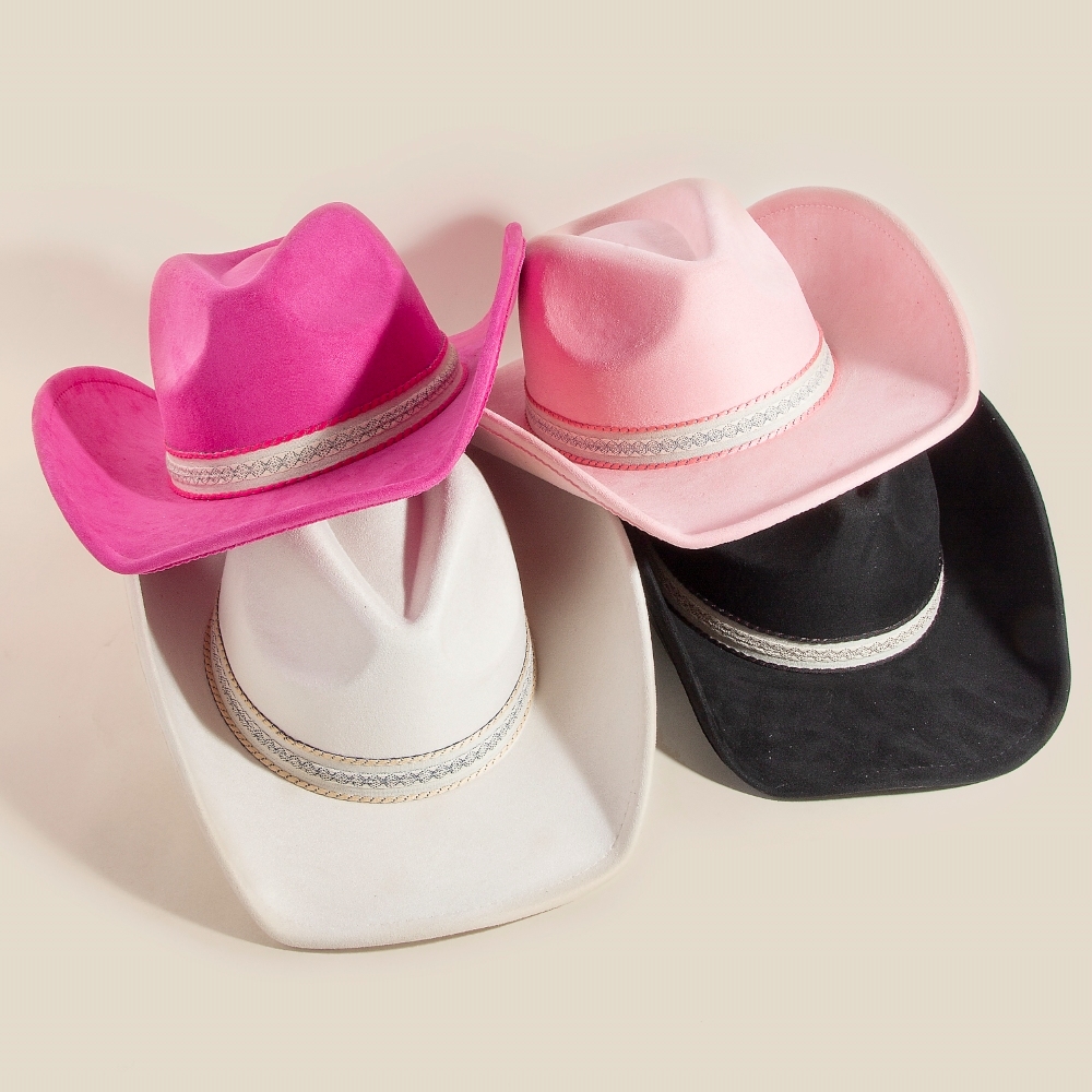 • Guaranteed to add a touch of glamour to any outfit, this cowboy hat includes a stunning zig zag pattern band design. Elevate your style effortlessly with this versatile cowboy hat, enhancing the appeal of any ensemble. Available in BK, FU, IV, PK. This item is sold in packs of 1.