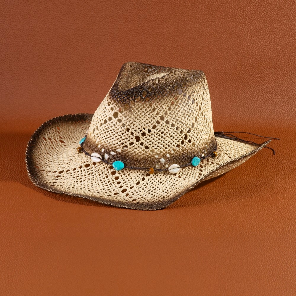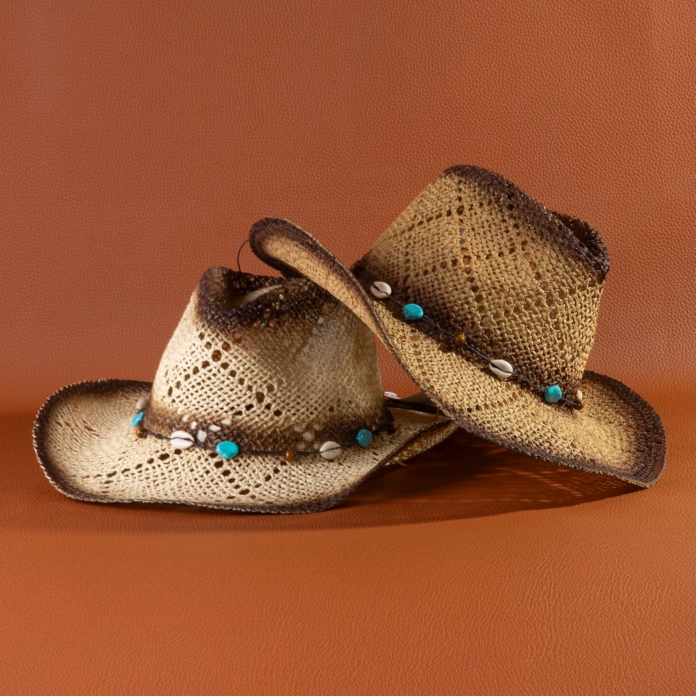 • Perfectly polished and endlessly versatile, this cowboy hat flaunts a luxurious cowrie shell straw design. The perfect cowboy hat for completing any outfit, whether you're dressing up or keeping it casual. Available in IV, KA. This item is sold in packs of 1.