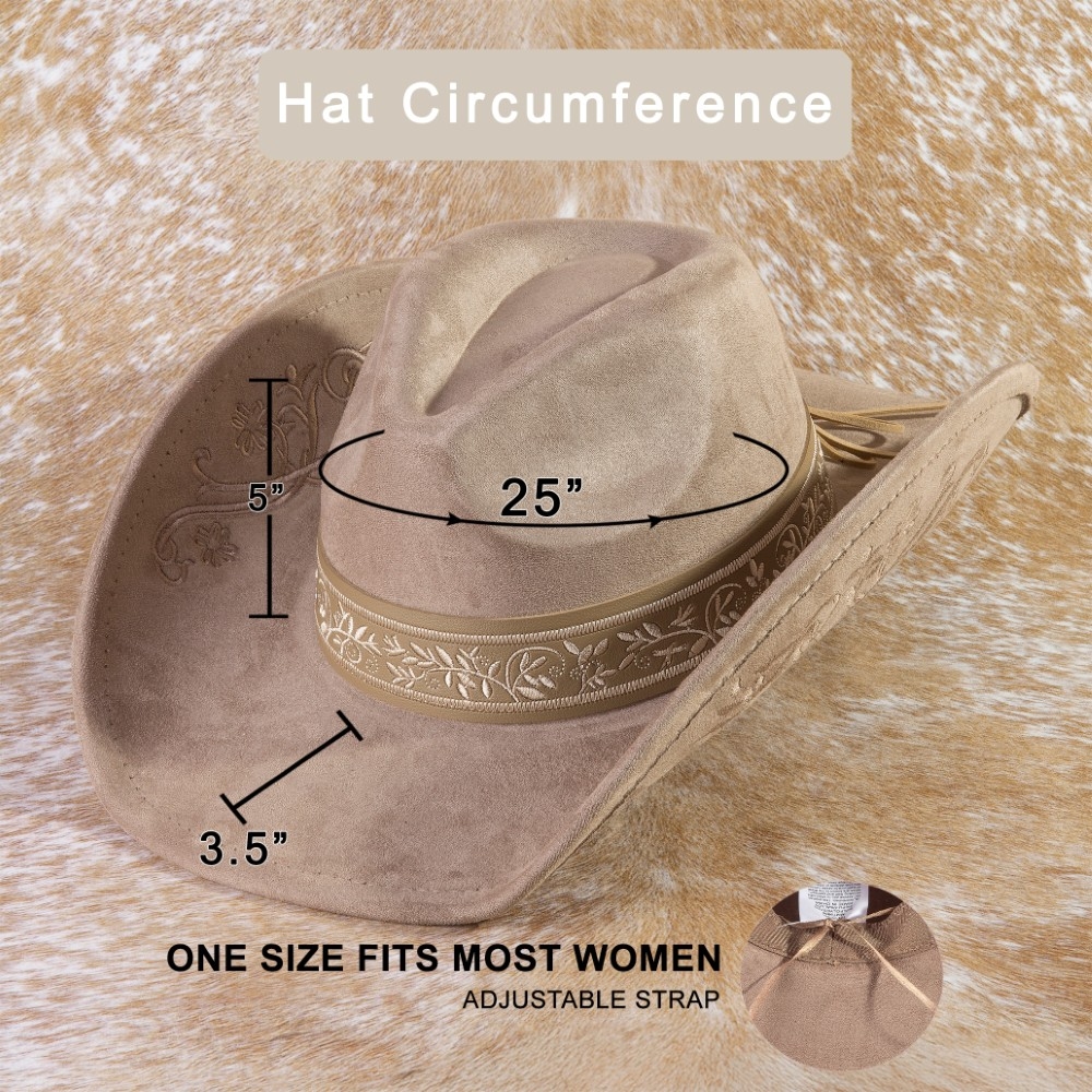 • Stay ahead of the fashion curve, this cowboy hat comes with a special embroidered vines western design. This item is ideal for those who want to add some personality to their outfits without being too bold. This item is sold in packs of 1.