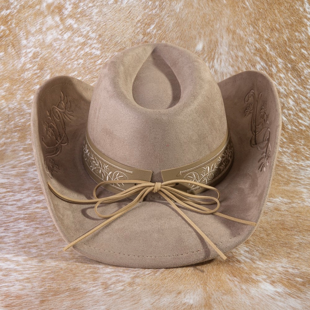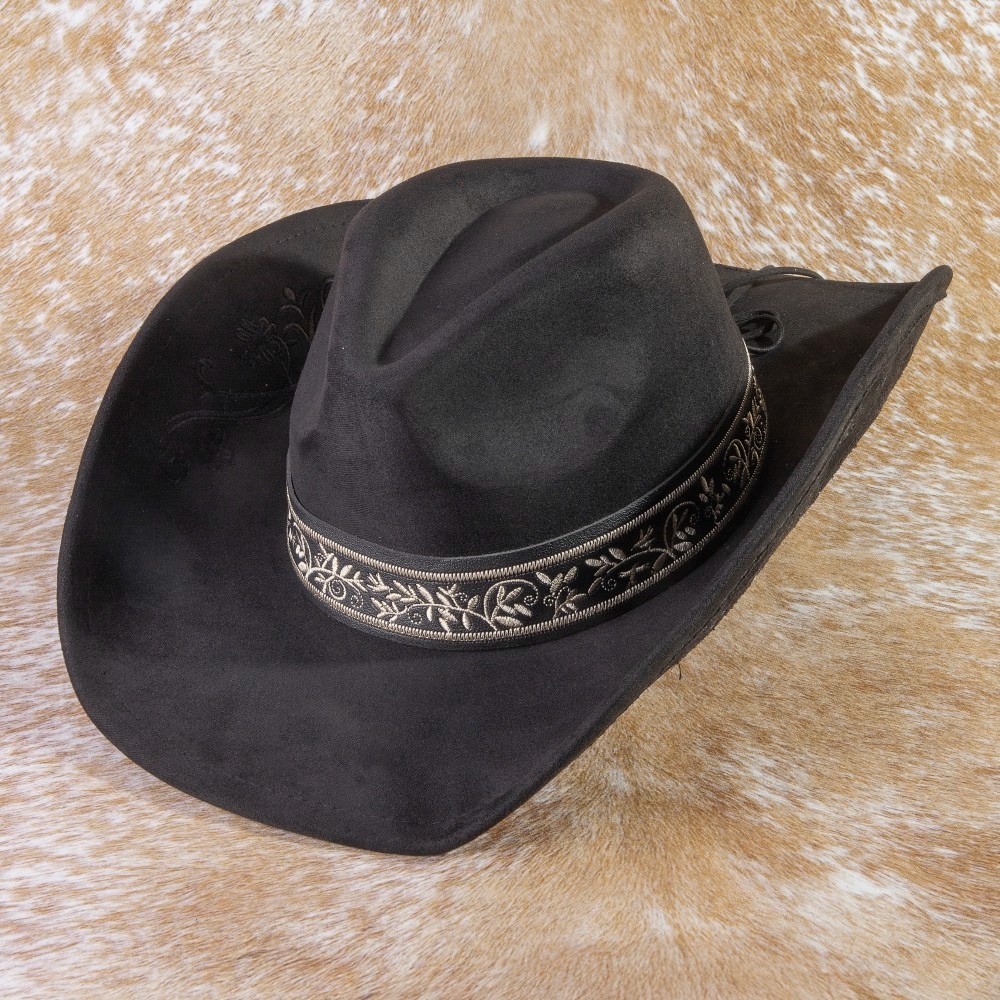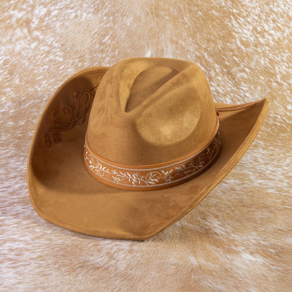 • This season's must-have cowboy hat, this cowboy hat flaunts a luxurious embroidered vines western design. Elevate your fashion IQ with this versatile cowboy hat, designed to seamlessly integrate into any style profile. This item is sold in packs of 12.