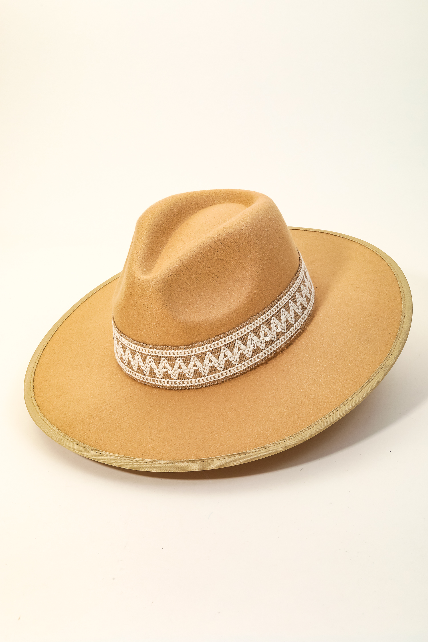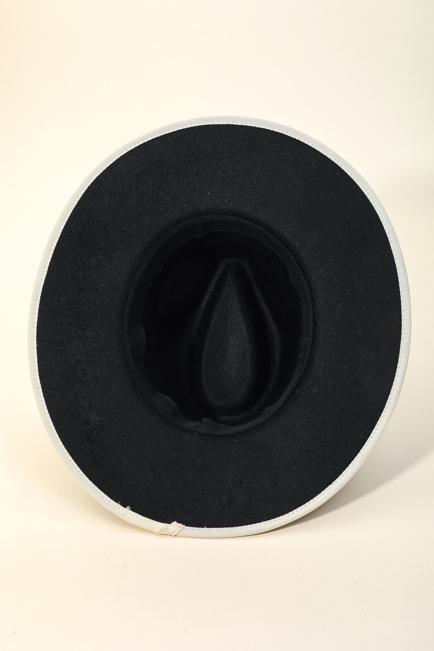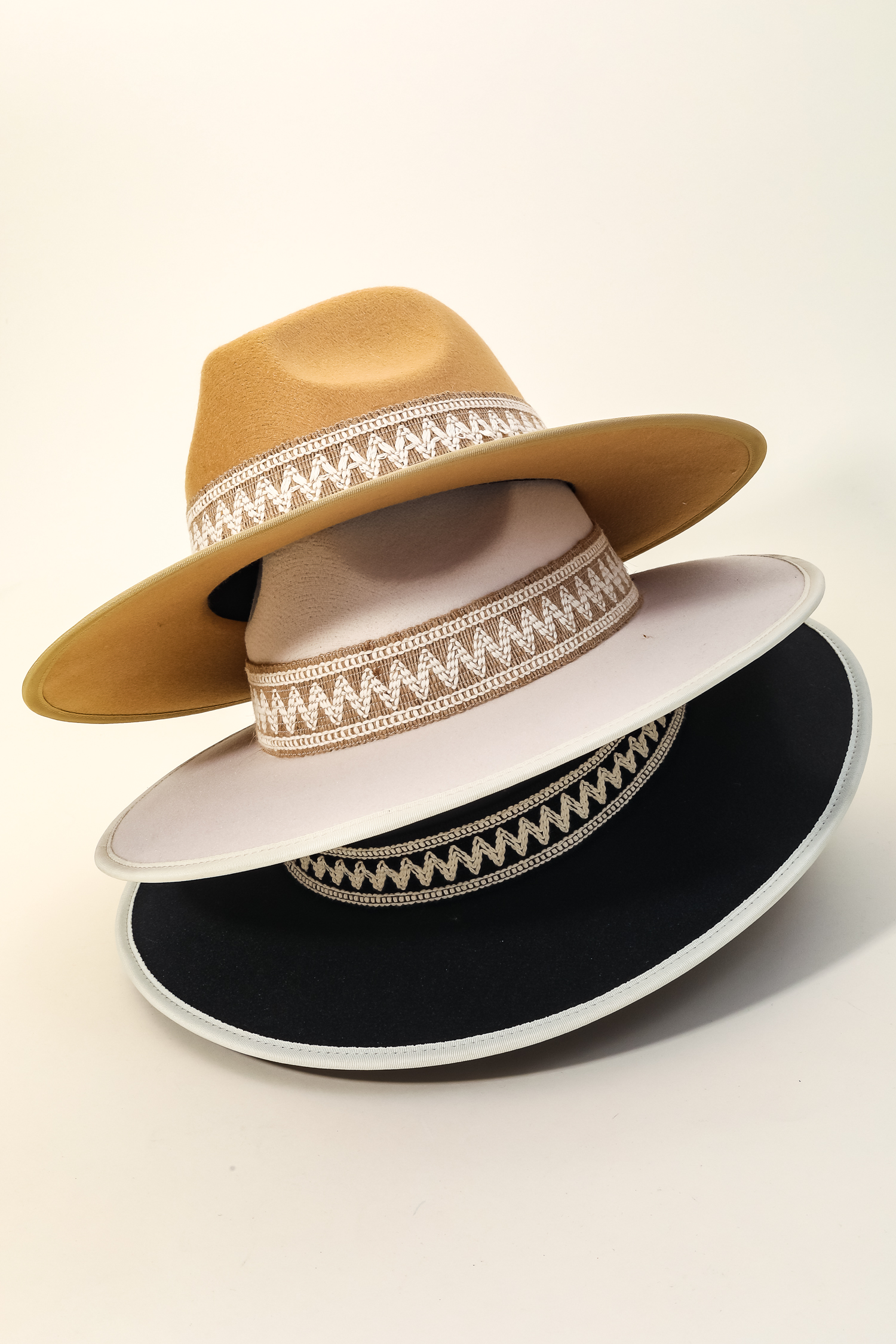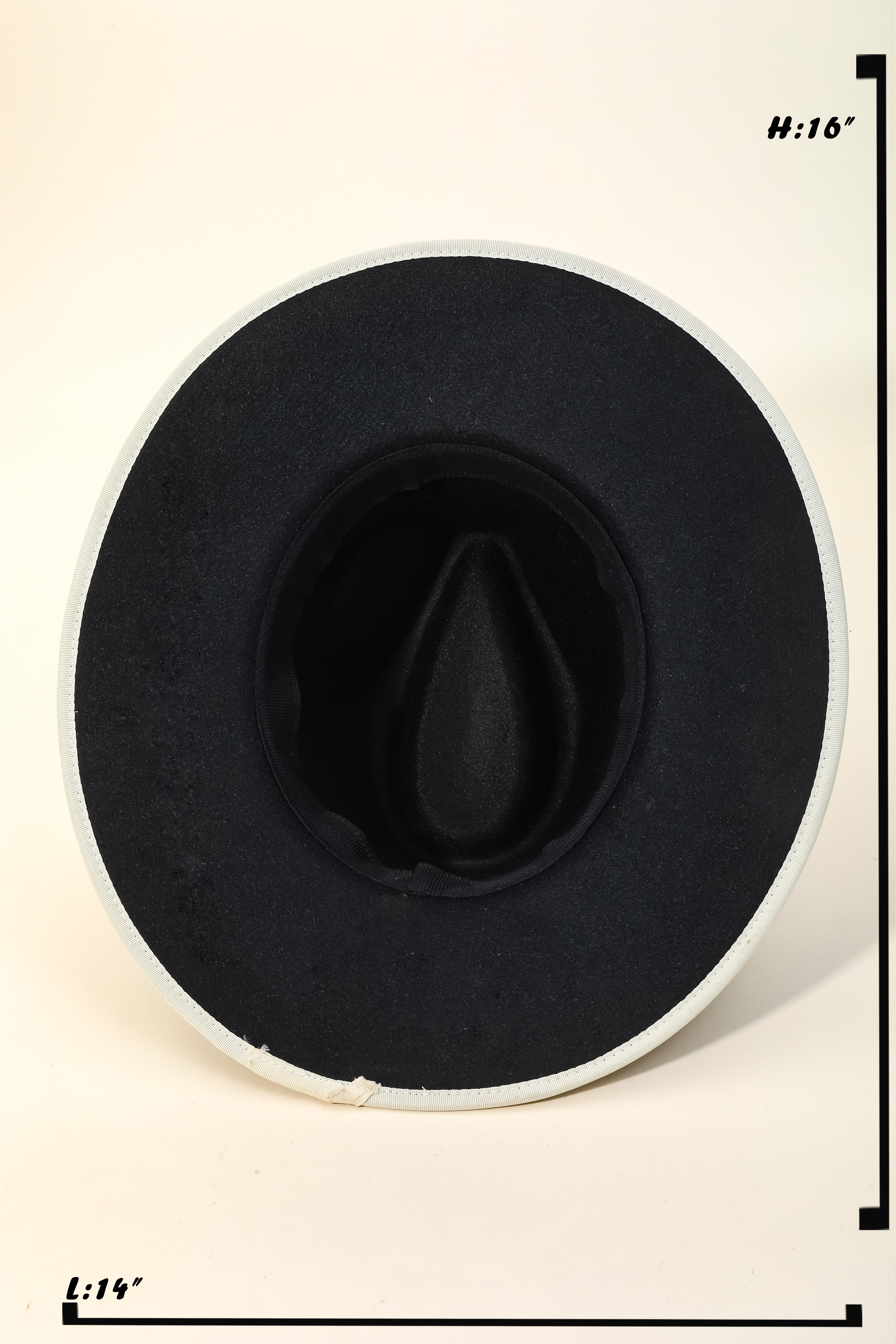 - This popular giftable fedora hat created into a gorgeous boho band 2 tone fedora hat design. This matches almost any outfit you have planned! Available in BK,IV and KA. Faux suede is a synthetic fabric typically 100% polyester made to resemble genuine suede that is produced from a cow hide. This fedora hat is made with 100% Polyester. Also made with an adjustable inner string. This item is sold in packs of 1.