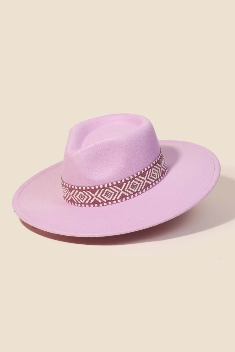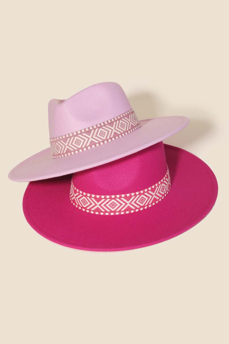 A versatile piece that can be dressed up or down, this cowboy hat displays a unique boho stripe pattern fedora hat design. A chic and sophisticated cowboy hat that's perfect for dressing up or down. Available in IV, TA, BE, BK, BL, BR, FU, LV, NV, PK and PU. This item is sold in packs of 1.