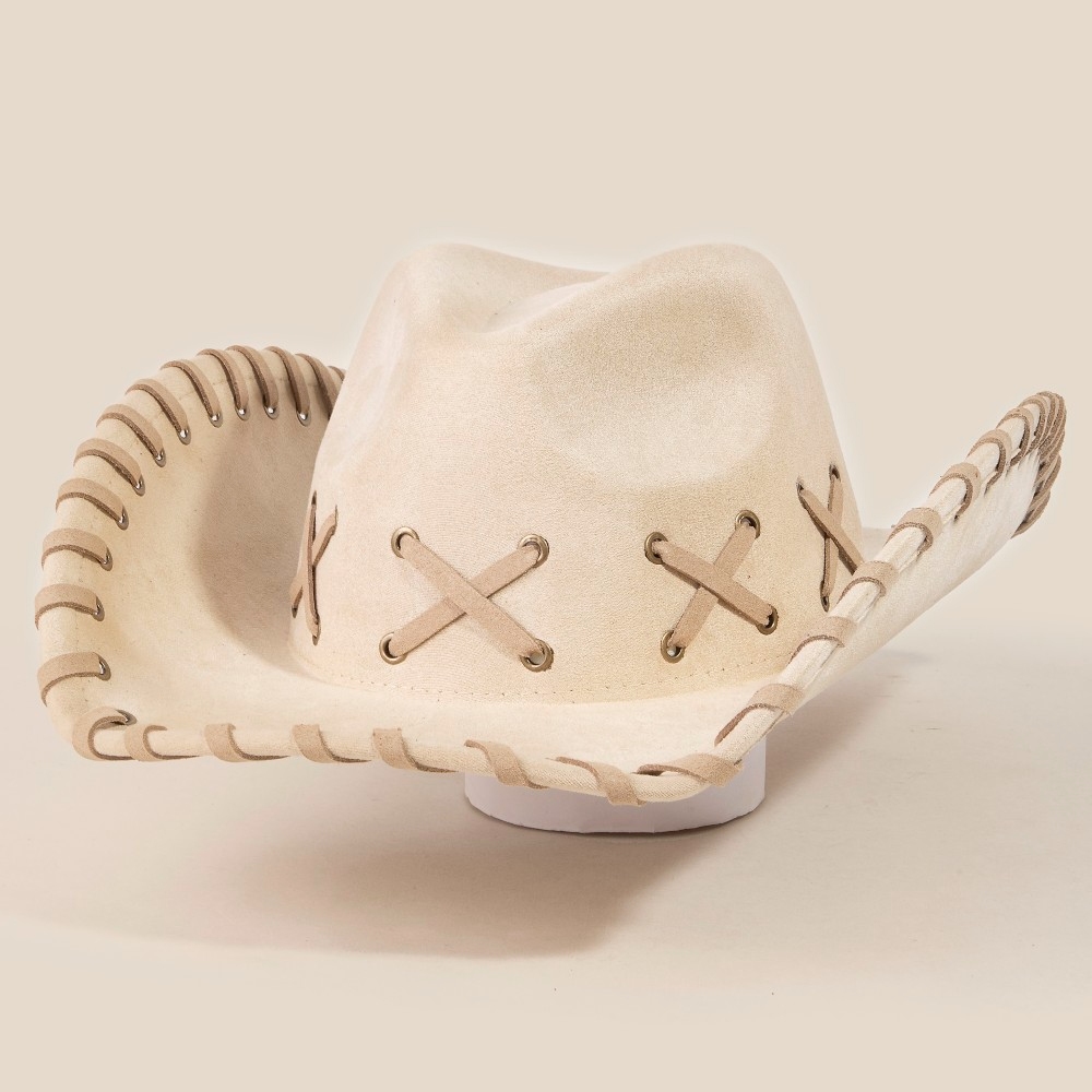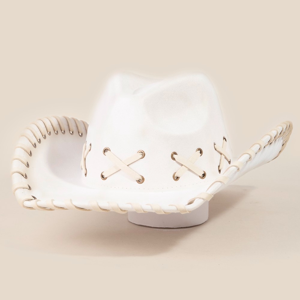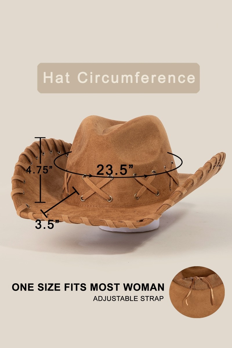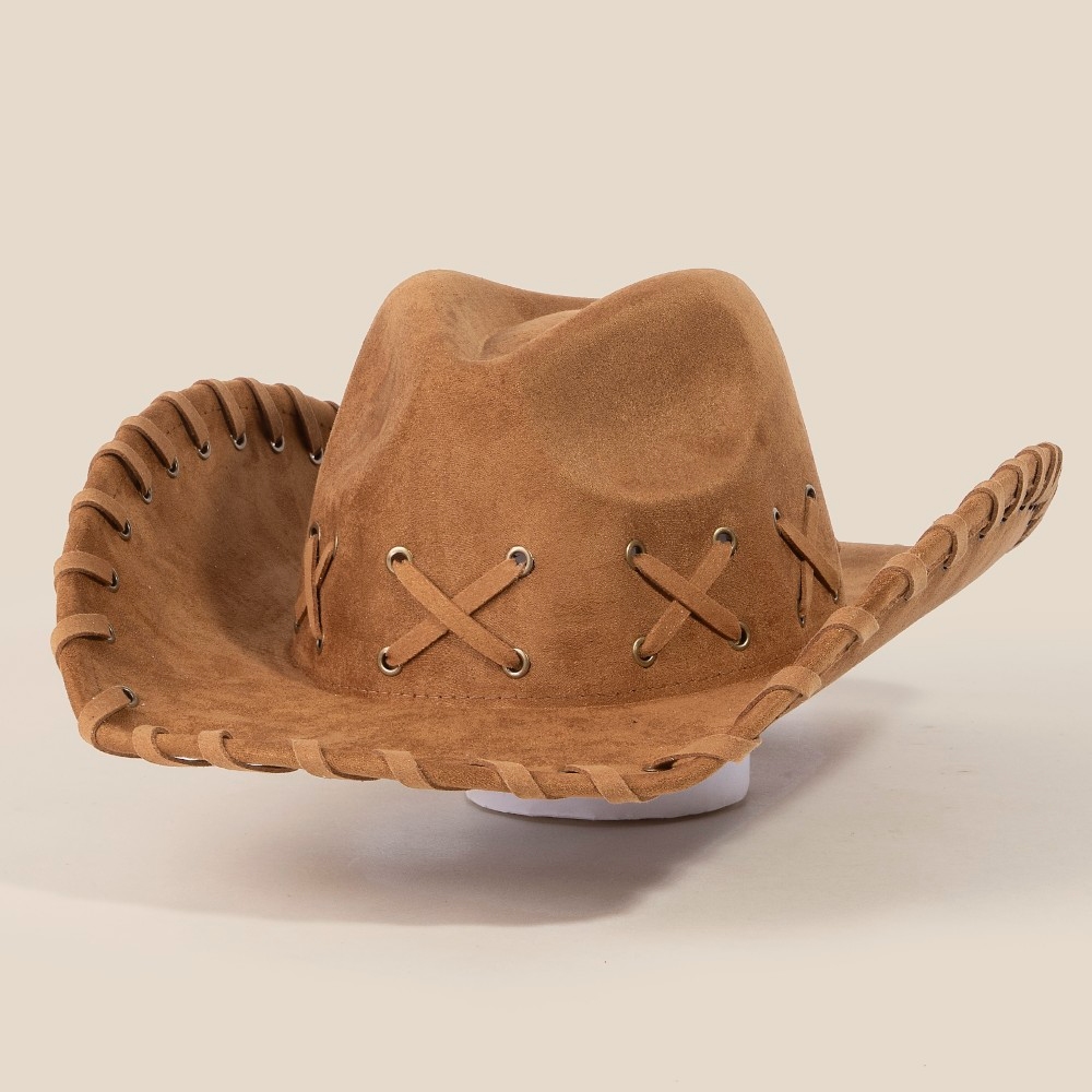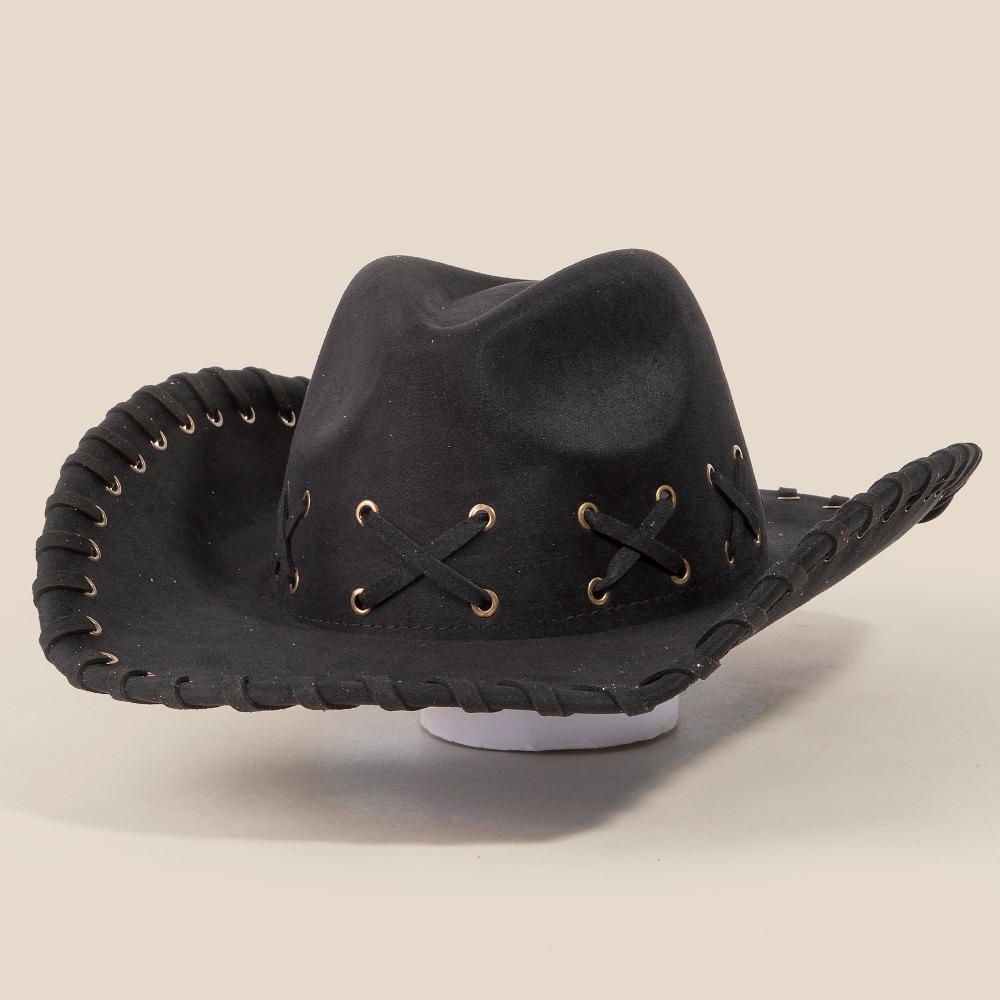 • This piece is both elegant and versatile, this cowboy hat highlights a special braided brim faux suede design. Elevate your outfit with this stylish cowboy hat that's perfect for any occasion. Available in BK, BR, IV, KA. This item is sold in packs of 1.
