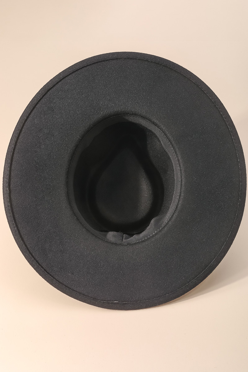 • A stunning must have hat is made into a flat brim faux leather fedora hat design. Perfect for casual occasions! This is great to wear during almost any occasion, and can suit casual or formal events perfectly. It includes a faux suede that is a synthetic fabric typically 100% polyester made to resemble genuine suede that is produced from a cow hide. This cowboy hat is made with 100% Polyester. Also made with an adjustable inner string. This item is sold in packs of 1.