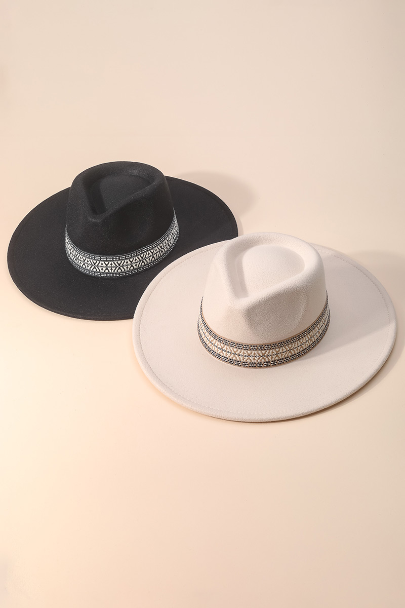 Two Tone Trim Straw Fedora Hat