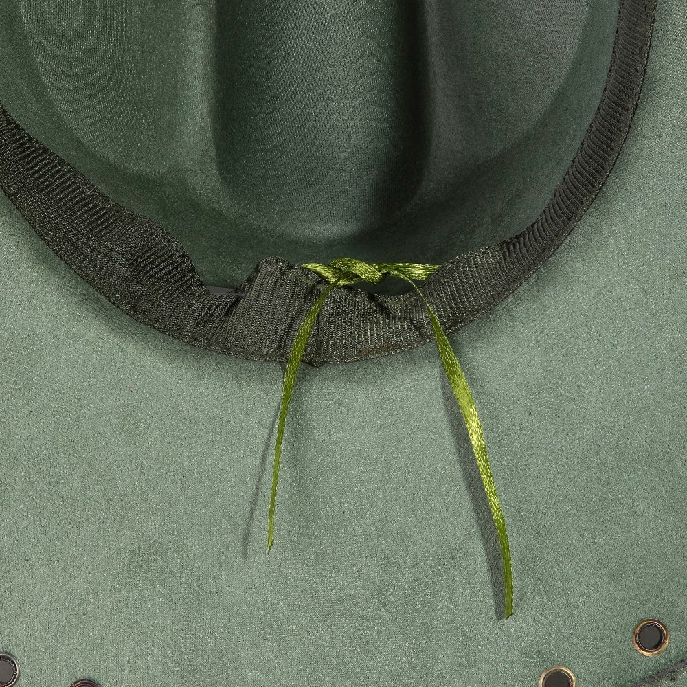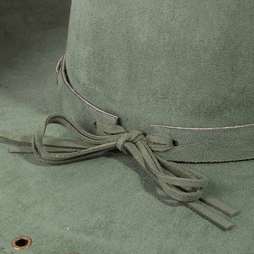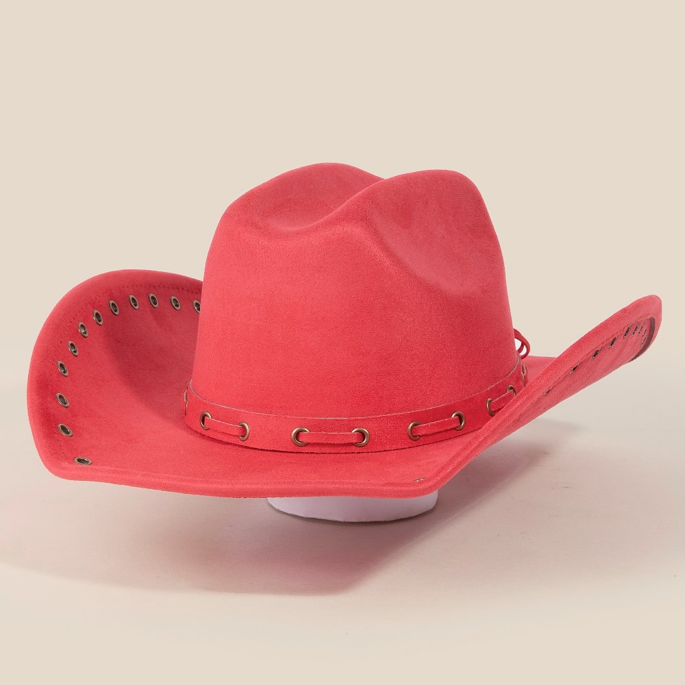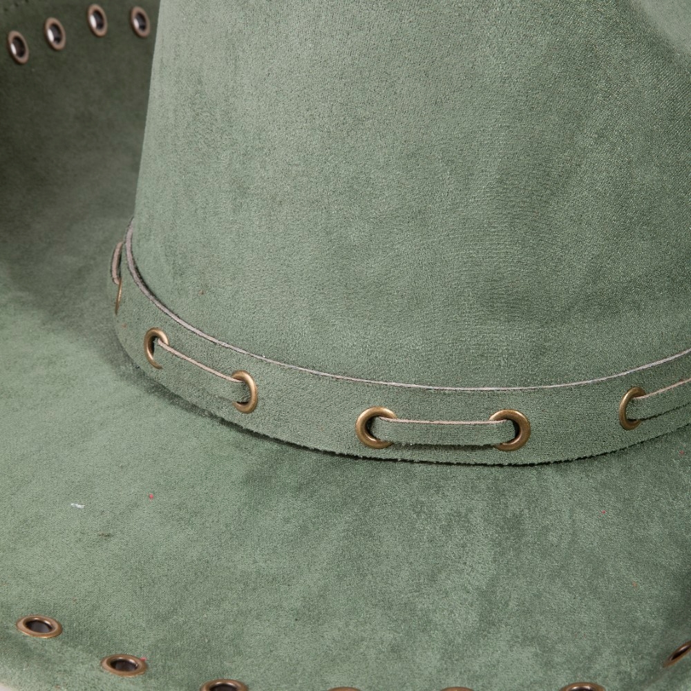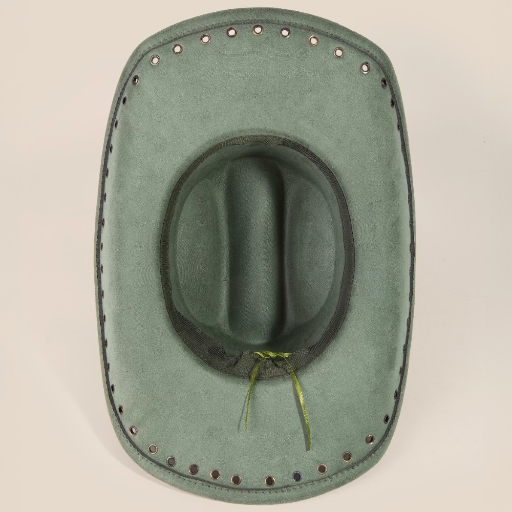 • Perfectly polished and endlessly versatile, this cowboy hat presents a striking grommet brim faux suede design. Transform your outfit from ordinary to extraordinary with the touch of elegance provided by this versatile cowboy hat. Available in BK, BR, IV, OL, RD. This item is sold in packs of 1.
