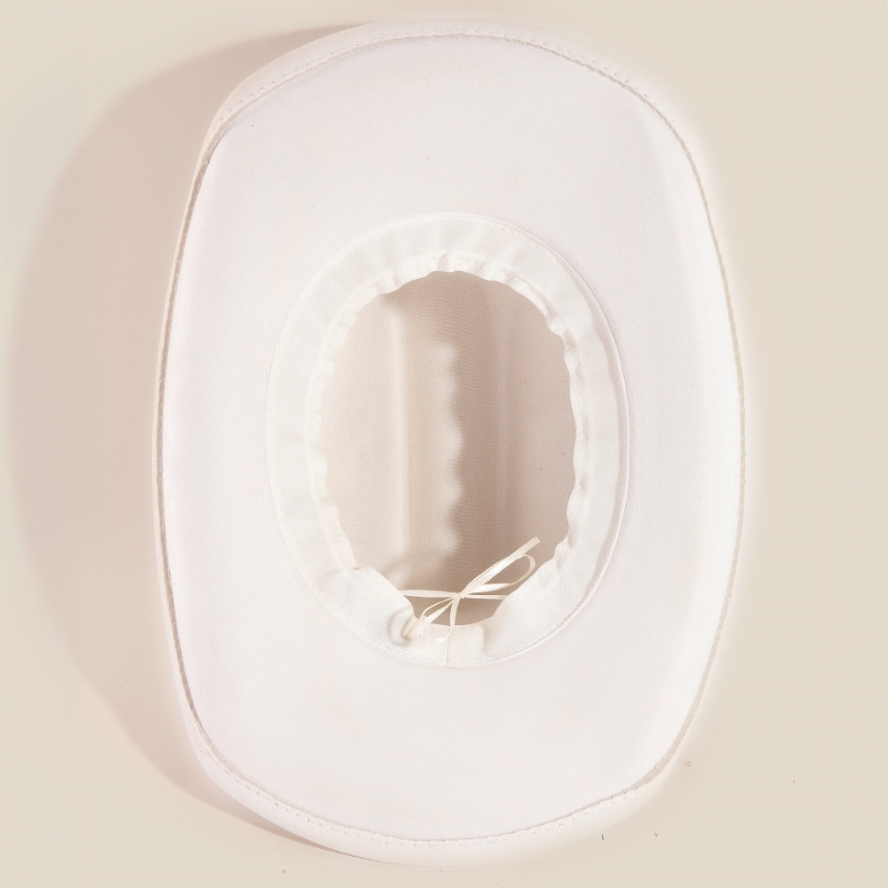 • Add some edge to your look, this cowboy hat shows off a distinctive intricate woven band faux suede design. Perfect for adding a touch of glamour and sophistication to any outfit, this cowboy hat is a must-have. Available in IV. This item is sold in packs of 1.