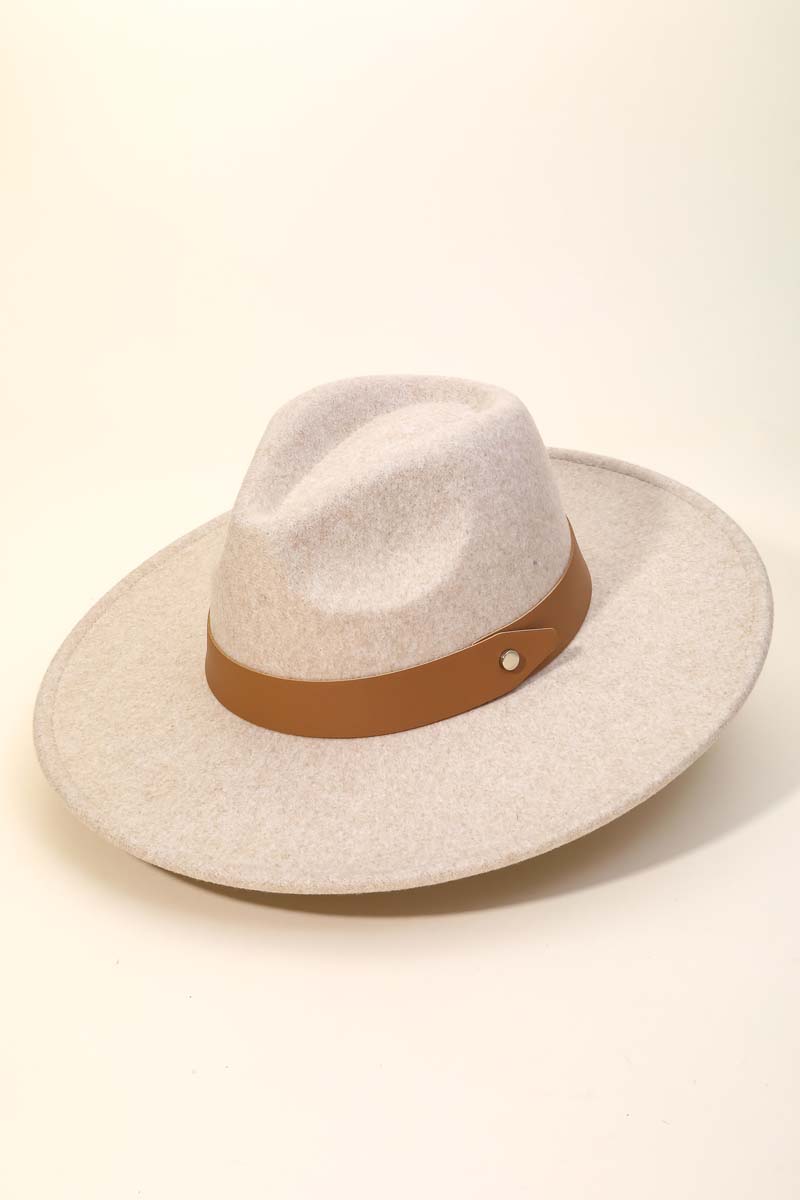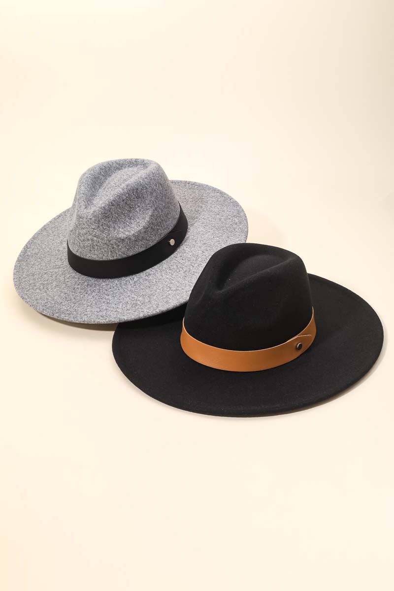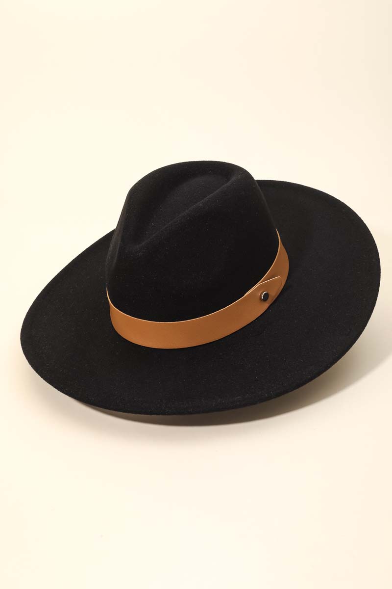 This popular giftable fedora hat has a gorgeous faux leather strap fedora fashion hat design. A perfect gift for the Spring season. Available in BK, GR and BE. Faux Suede