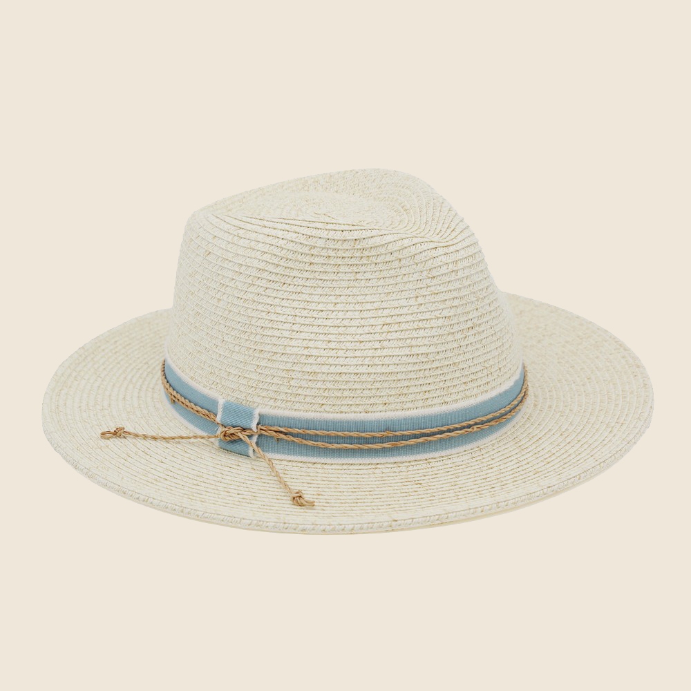 Braided Stone Strap Straw Fedora Hat