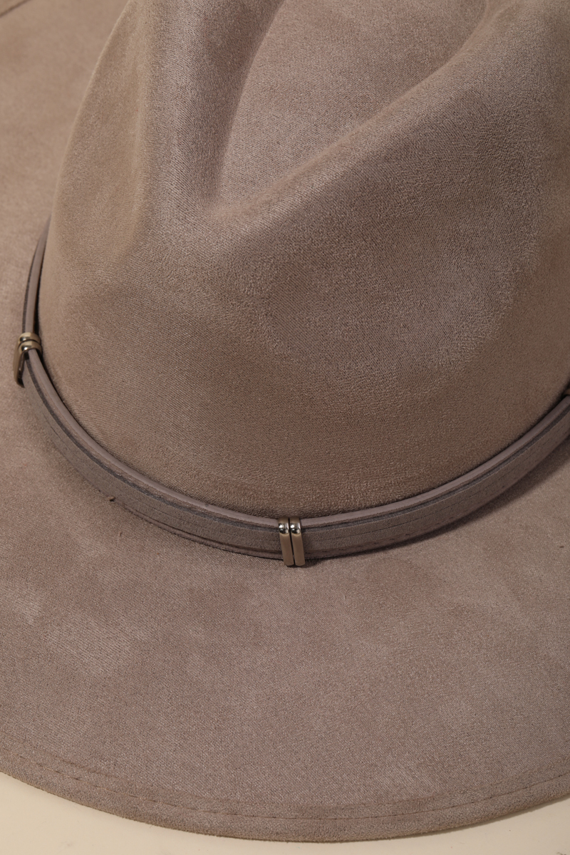 An absolute must have fedora hat that is designed with a wide brim fedora fashion hat design. Perfect for casual events and daily wear. Available in CA, TP, BK and IV. It includes a faux suede that is a synthetic fabric typically 100% polyester made to resemble genuine suede that is produced from a cow hide. This fedora hat is made with 90% Polyester and 10% Alloy. Also made with an adjustable inner string. This item is sold in packs of 1.