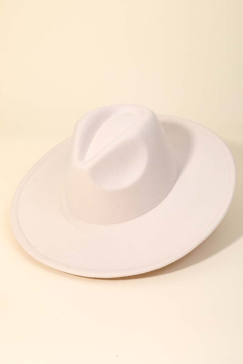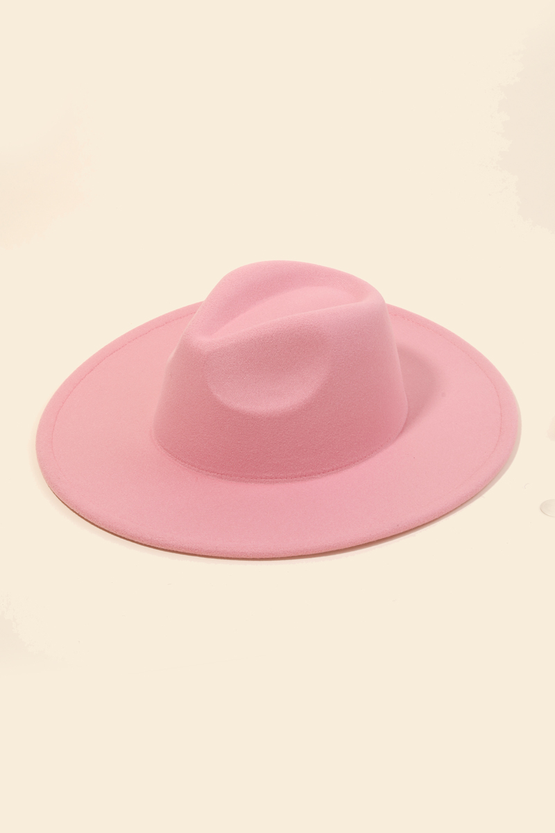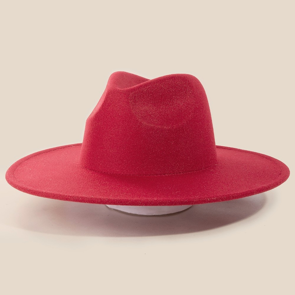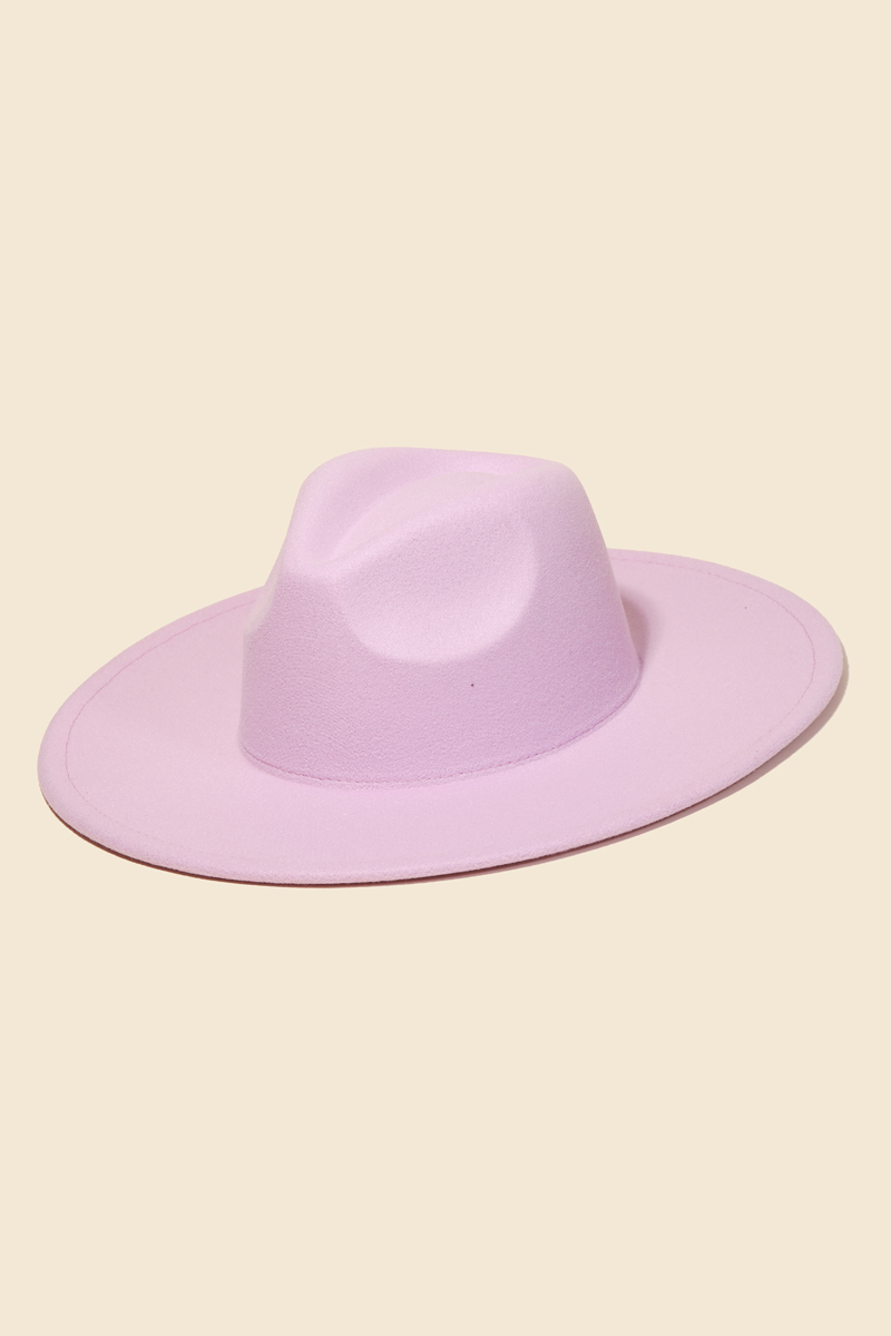 - This season's must-have accessory, this fedora hat contains a special flat brim fedora fashion hat design. This item adds the perfect finishing touch to any outfit, making it stand out from the crowd. Faux suede is a synthetic fabric typically 100% polyester made to resemble genuine suede that is produced from a cow hide. This fedora hat is made with 100% Polyester. Also made with an adjustable inner string. This item is sold in packs of 1.