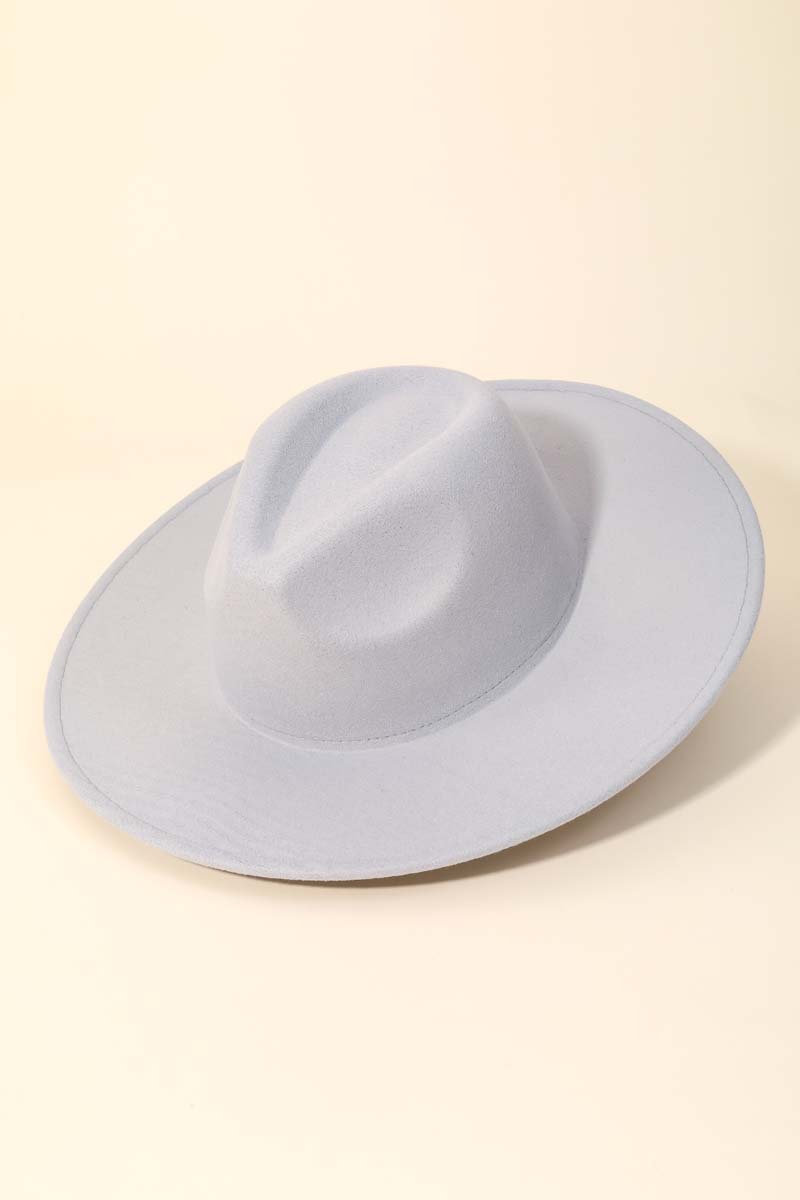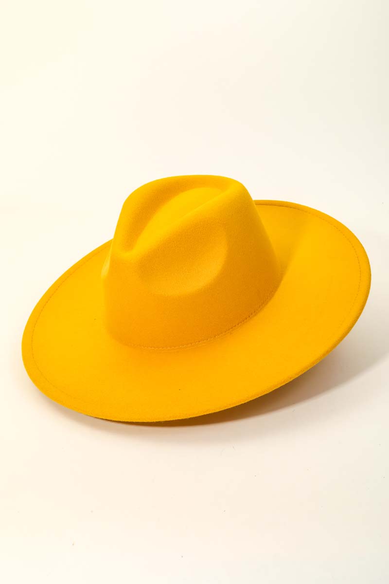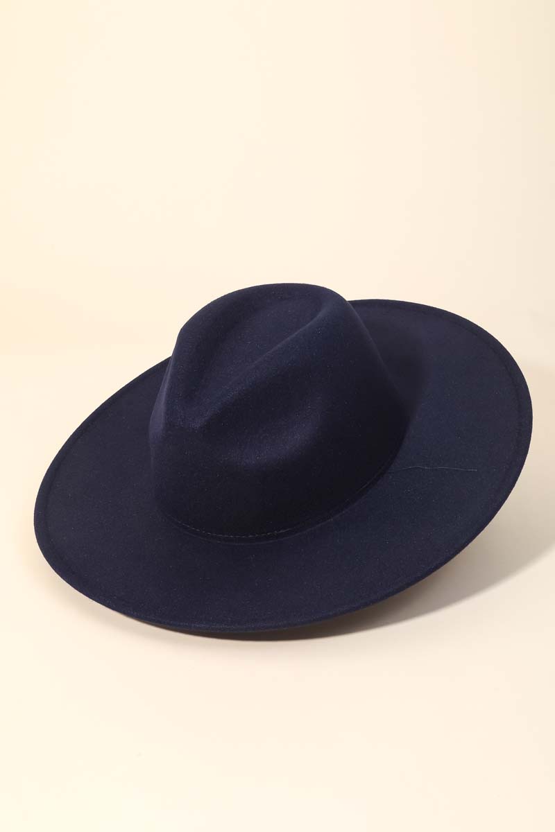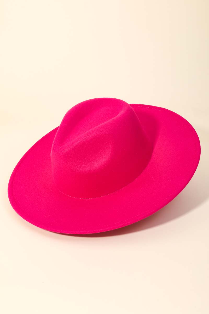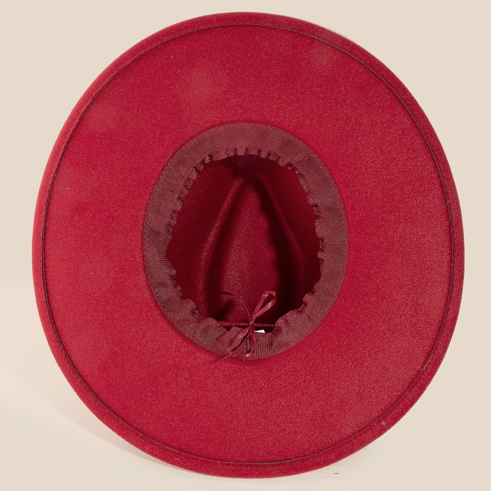 - This season's must-have accessory, this fedora hat contains a special flat brim fedora fashion hat design. This item adds the perfect finishing touch to any outfit, making it stand out from the crowd. Faux suede is a synthetic fabric typically 100% polyester made to resemble genuine suede that is produced from a cow hide. This fedora hat is made with 100% Polyester. Also made with an adjustable inner string. This item is sold in packs of 1.