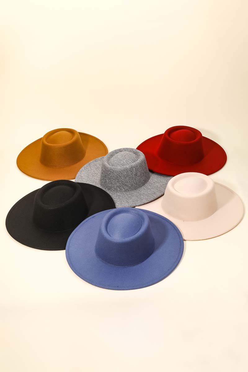 - This is a soon to be trending hat features a beautiful fedora hat design. This matches almost any outfit you have planned! Faux suede is a synthetic fabric typically 100% polyester made to resemble genuine suede that is produced from a cow hide. This fedora hat is made with 100% Polyester. Also made with an adjustable inner string. This item is sold in packs of 1.