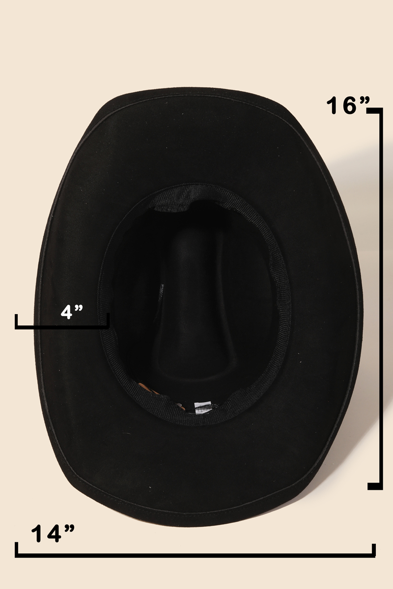 • This cowboy hat is made with 90% Polyester and 10% Alloy.