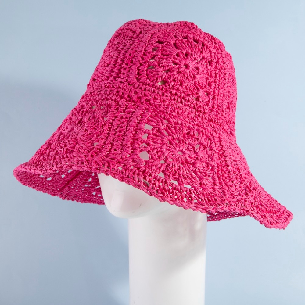 Guaranteed to add a touch of glamour to any outfit, this bucket hat incorporates a remarkable large square pattern knit design. Experience the transformative power of this versatile bucket hat, effortlessly enhancing the overall aesthetic of your outfit. Available in FU, BK, IV and KA. This item is sold in packs of 1.