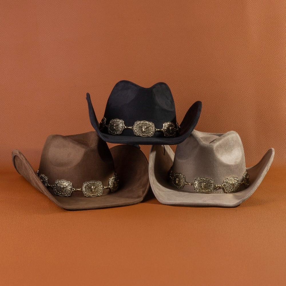 • Perfect for any fashion-forward individual, this cowboy hat features a distinct longhorn concho chain western design. Discover a new level of fashion versatility as this cowboy hat effortlessly elevates the allure of your attire. This item is sold in packs of 12.
