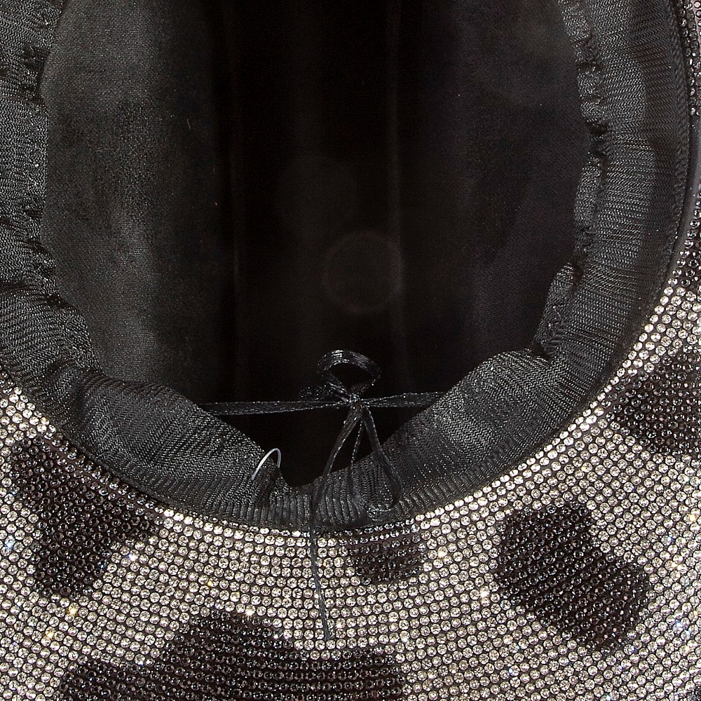 The perfect way to add some sparkle to your outfit, this cowboy hat radiates a sleek pave rhinestone studded cow pattern design. This versatile cowboy hat adds a touch of elegance to any outfit. Available in BK and IV. This item is sold in packs of 1.