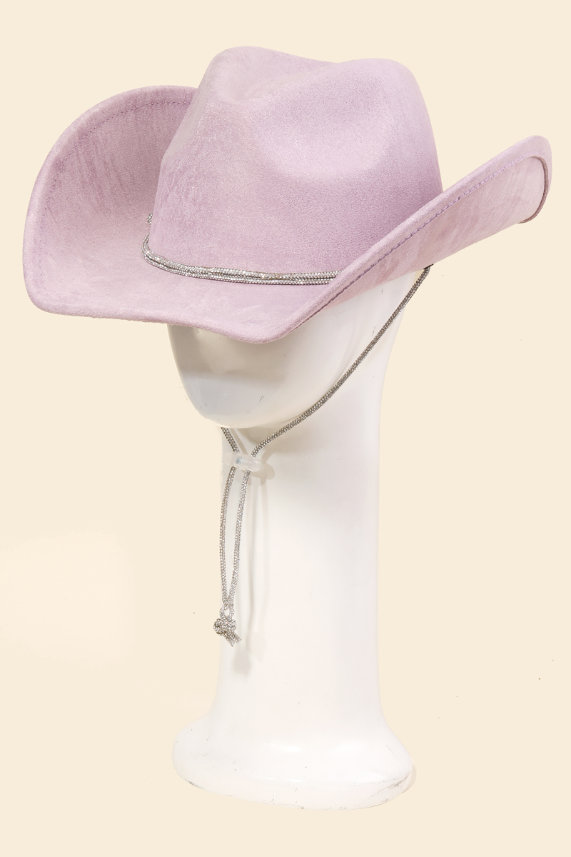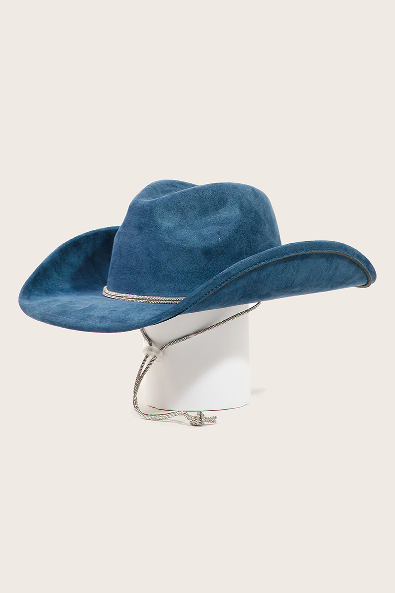 - Upgrade your cowboy hat game, this cowboy hat showcases an alluring rhinestone rope strap design. Elevate your personal style effortlessly with this versatile cowboy hat, an essential component for a refined wardrobe. Available in BK, BL, DBL, IV, PU, RU, YE and PK. This item is sold in packs of 1.