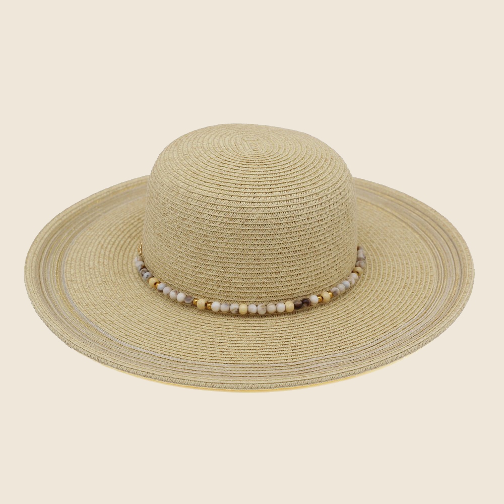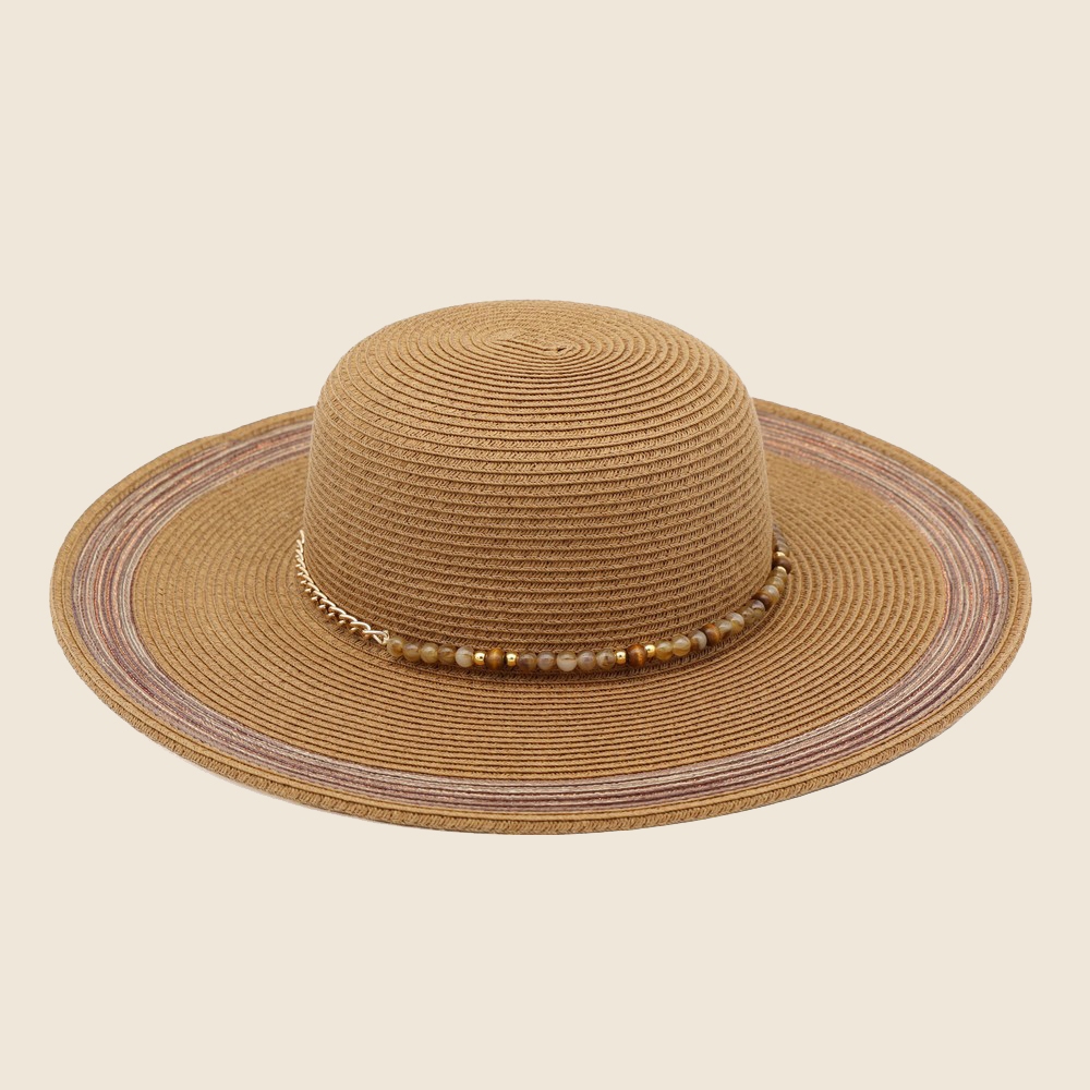 Make a statement, this sun hat offers a remarkable beaded strap straw design. This sun hat is a great way to add some glamour and sophistication to your outfit. Available in BR, NA, TN, TQ. This item is sold in packs of 1.