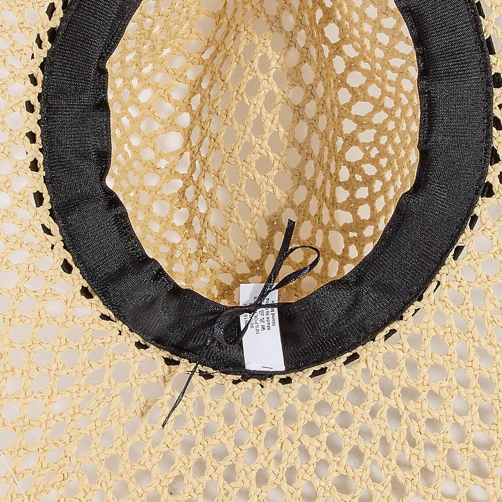 This sun hat is made with 90% Paper and 10% Poly.