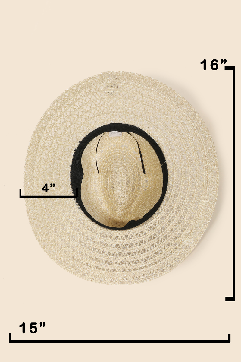 • Perfect for any fashion-forward individual, this sun hat incorporates a remarkable fashionable straw weave design. A must-have sun hat for anyone who loves to add some flair to their outfits. Available in BK, TA, TA2 and IV. This item is sold in packs of 1.