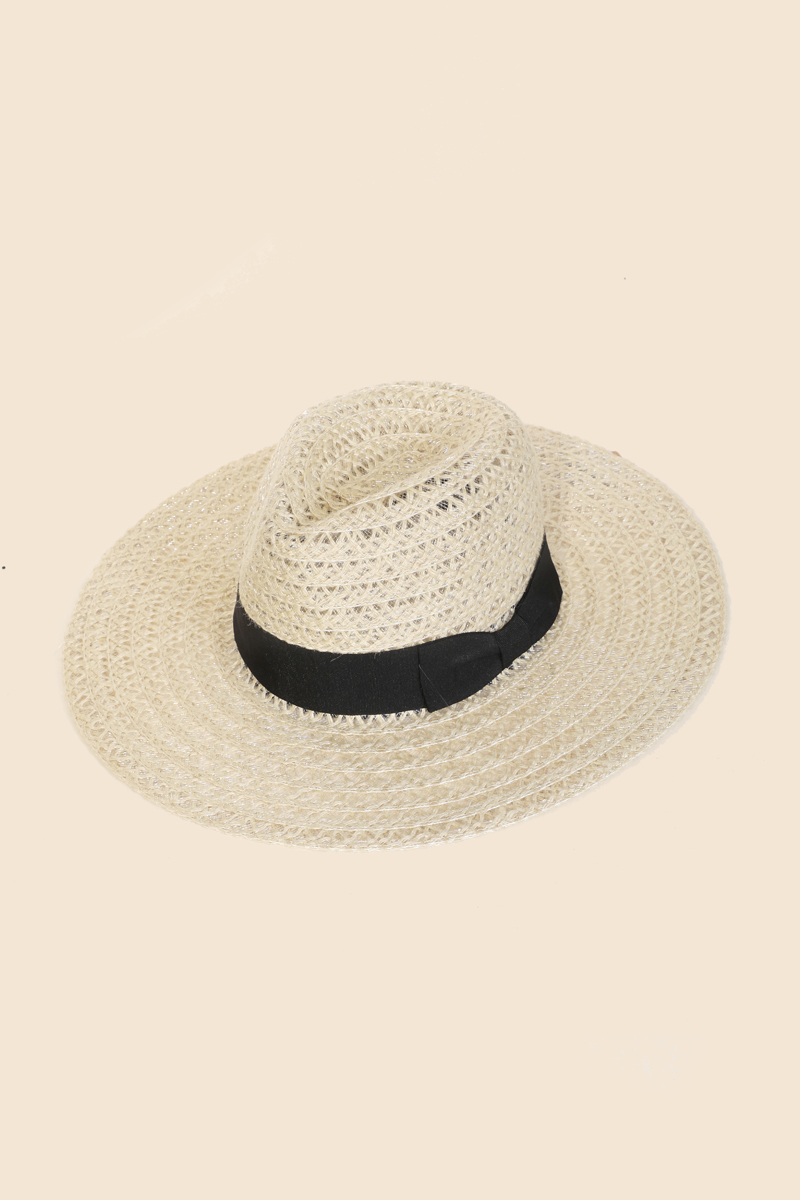 Metallic Accent Trim Floppy Sun Hat