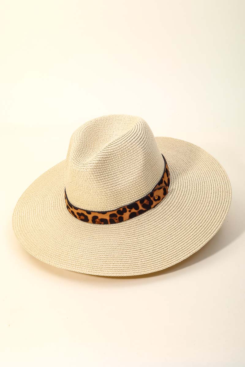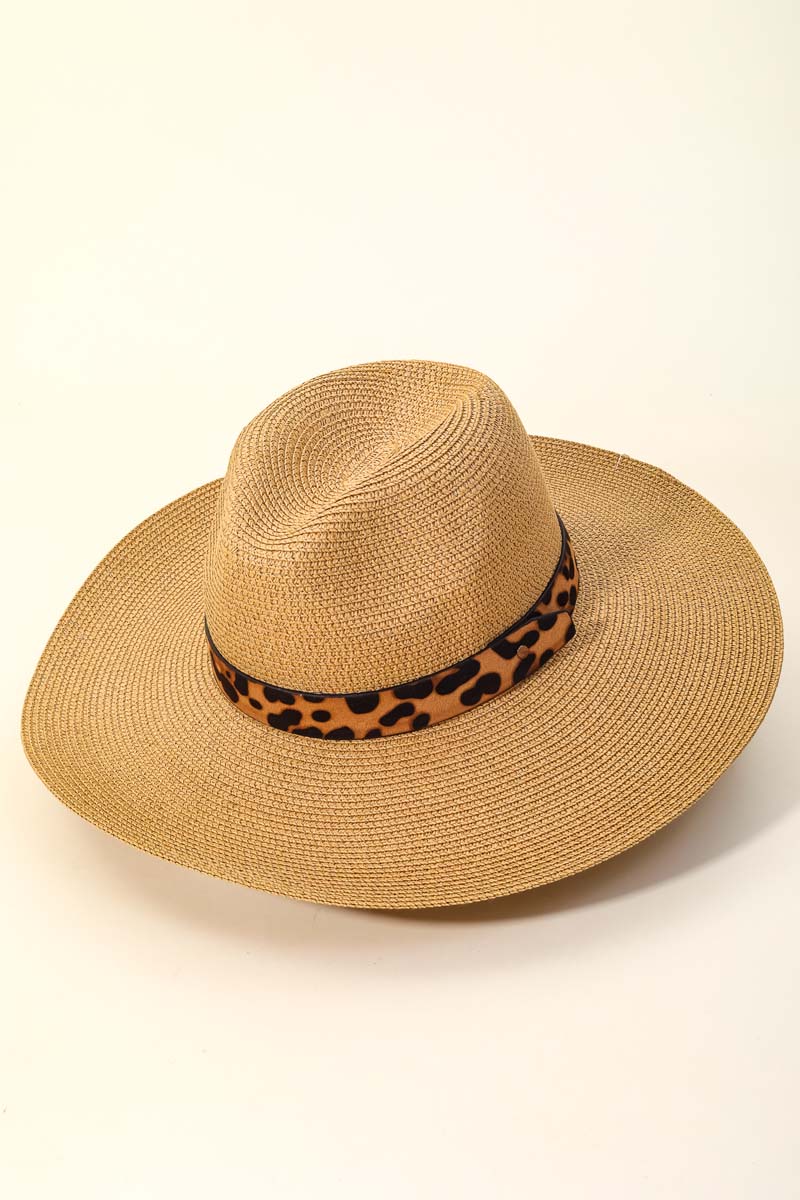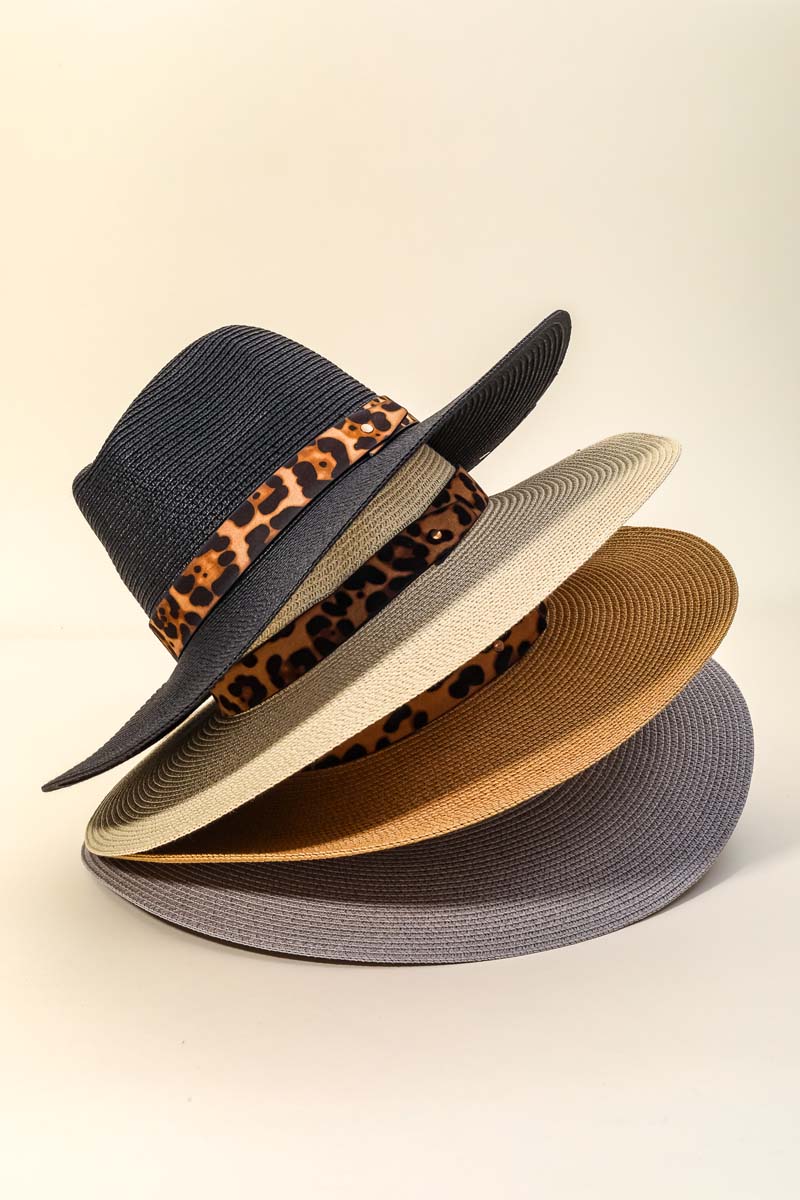 • Effortlessly elevate your style with this straw hat includes a stunning leopard ribbon straw hat design. A must-have accessory that effortlessly enhances your style, no matter the occasion. This item is sold in packs of 1.
