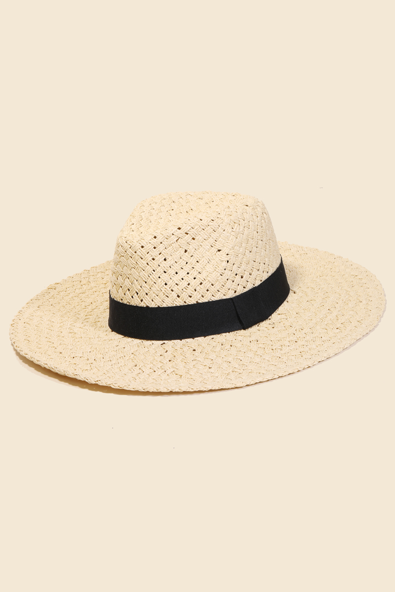 • This is a popular trending sun hat that features a beautiful straw braided black ribbon strap sun hat design. Perfect for business casual occasions! This item is sold in packs of 1.