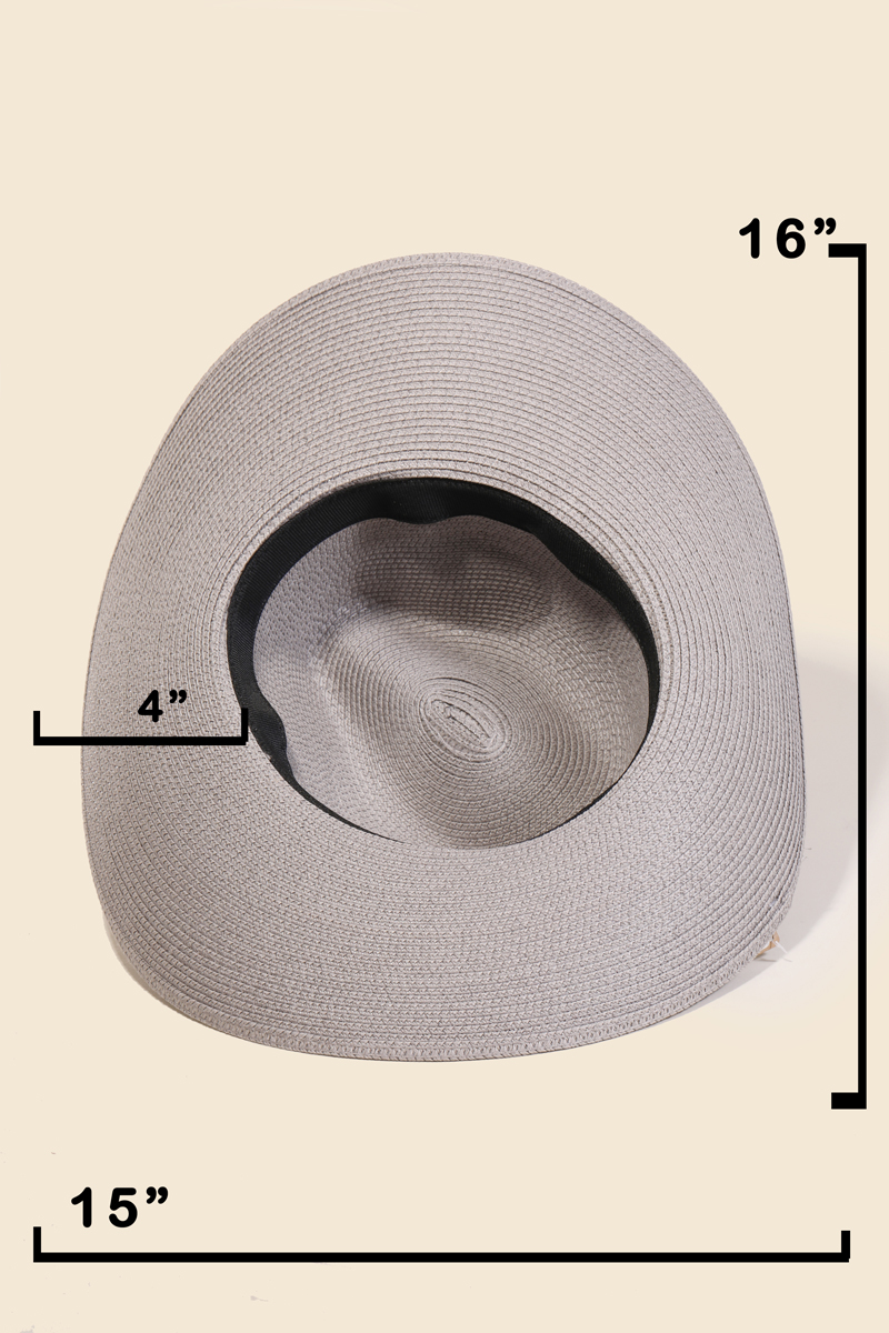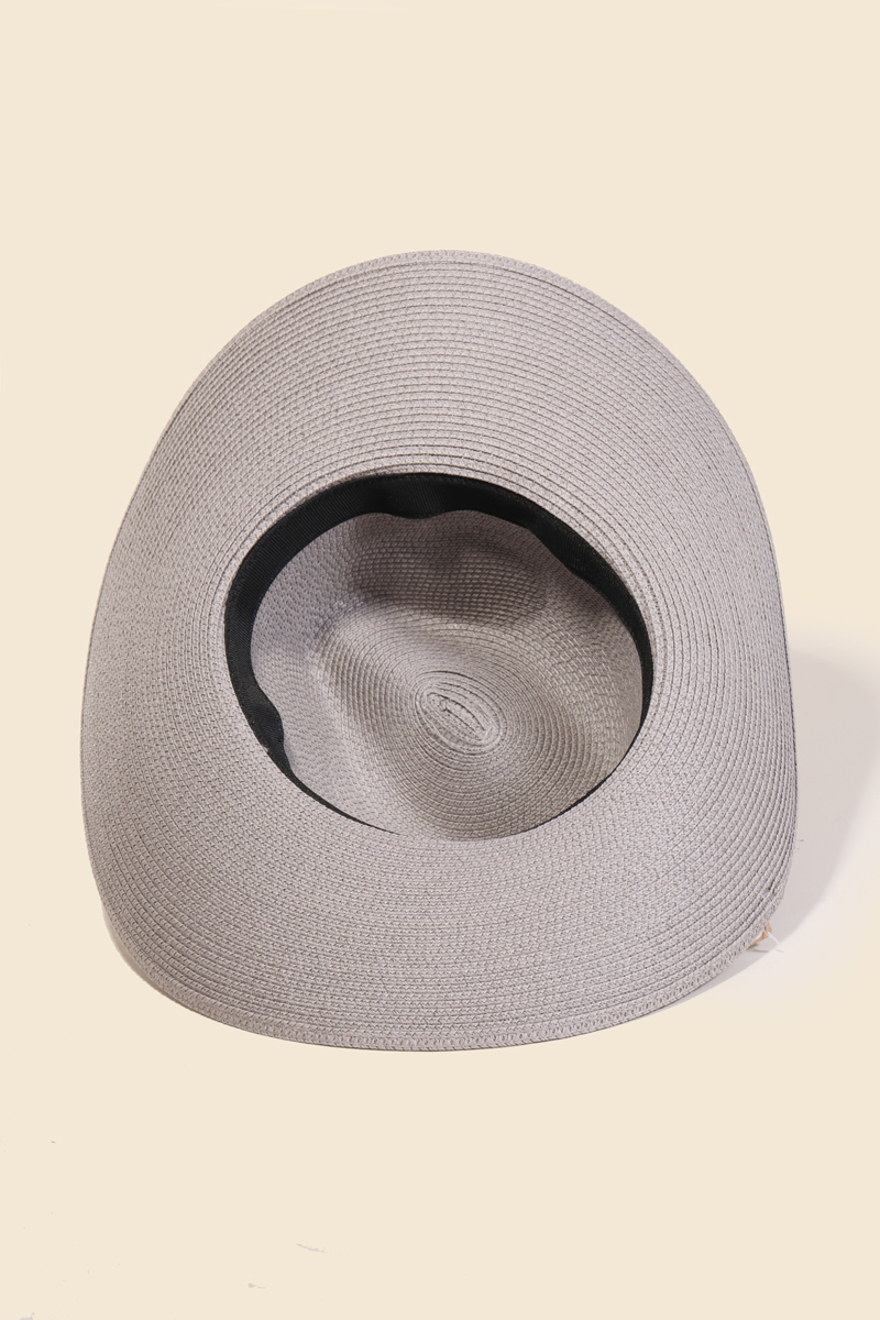 This straw hat is made with 90% paper and 10% Polyester