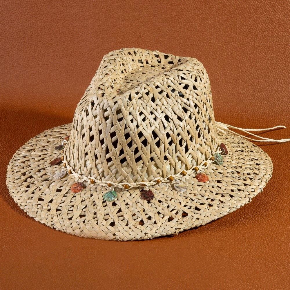 Straw Weave Evil Eye Beaded Rope Sun Hat