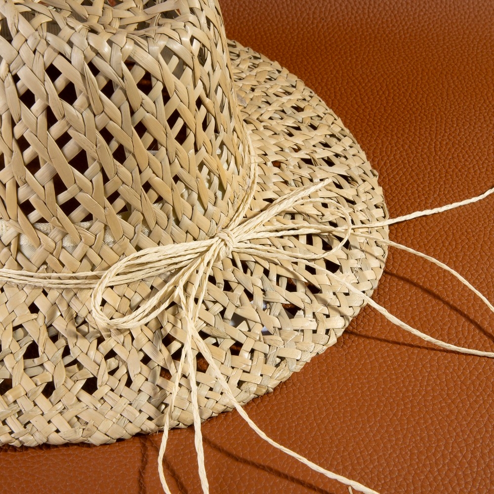 Western Longhorn Leather Strap Straw Cowboy Hat